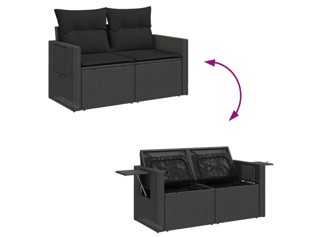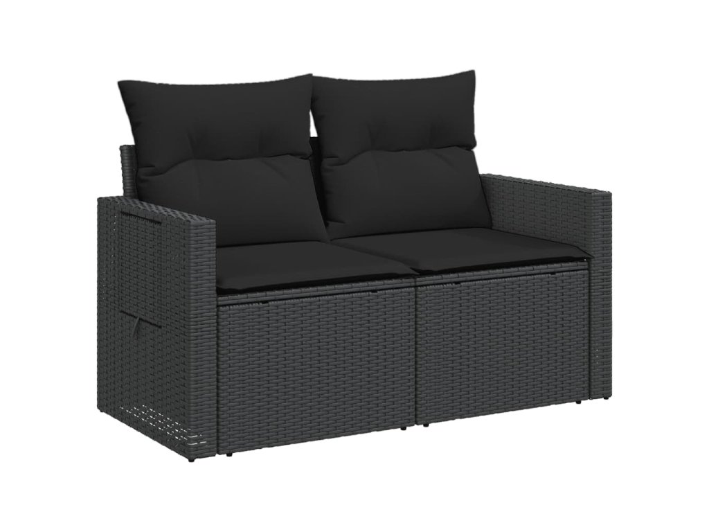 Zahradní pohovka s poduškami 2místná černá polyratan 365990
