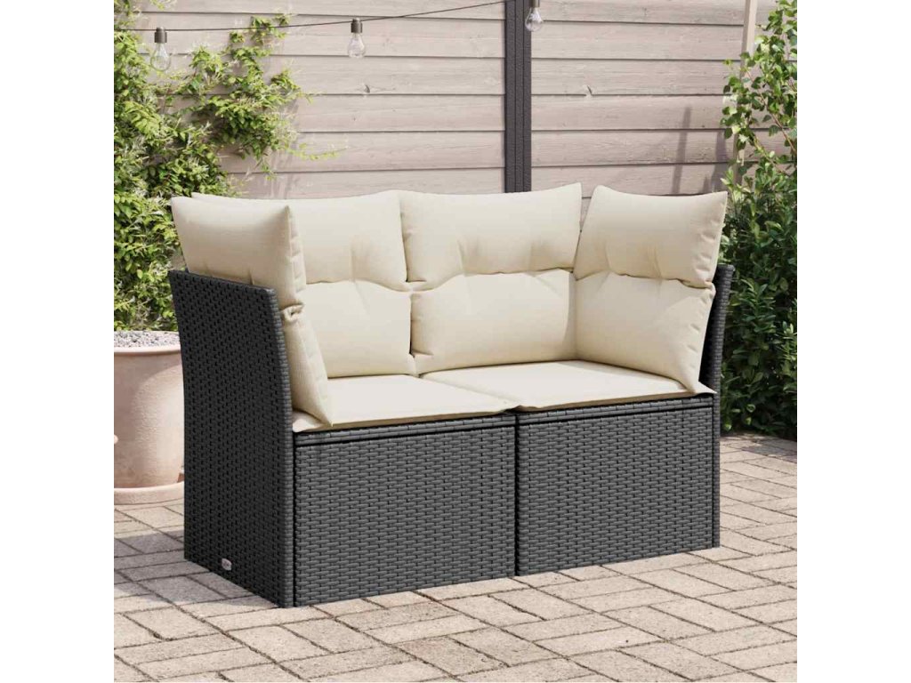Zahradní pohovka s poduškami 2místná černá polyratan 365998