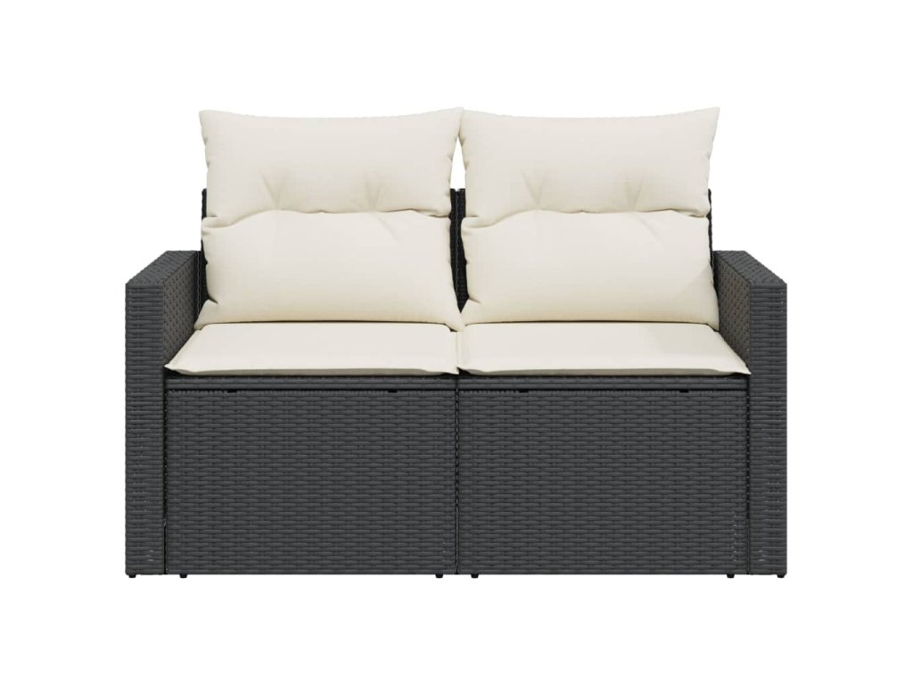 Zahradní pohovka s poduškami 2místná černá polyratan 366004