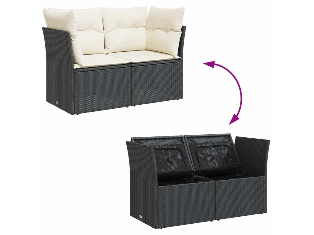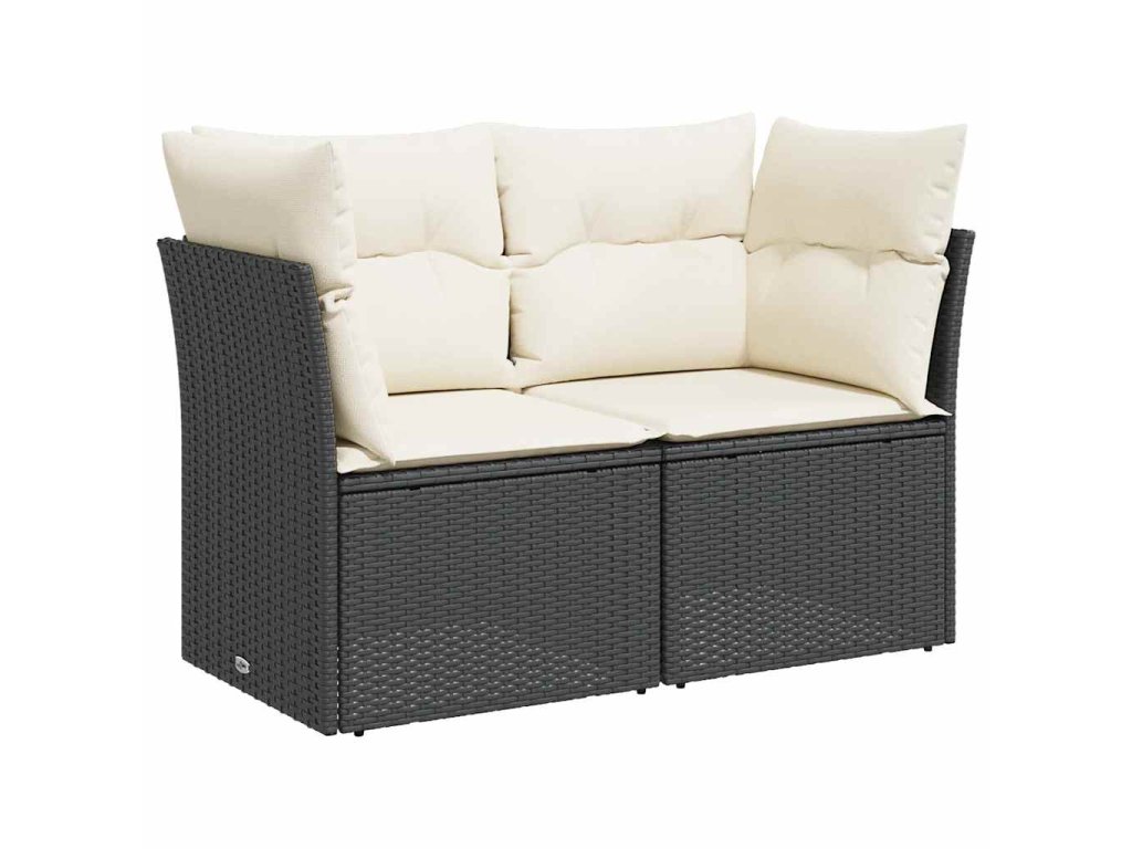 Zahradní pohovka s poduškami 2místná černá polyratan 366013