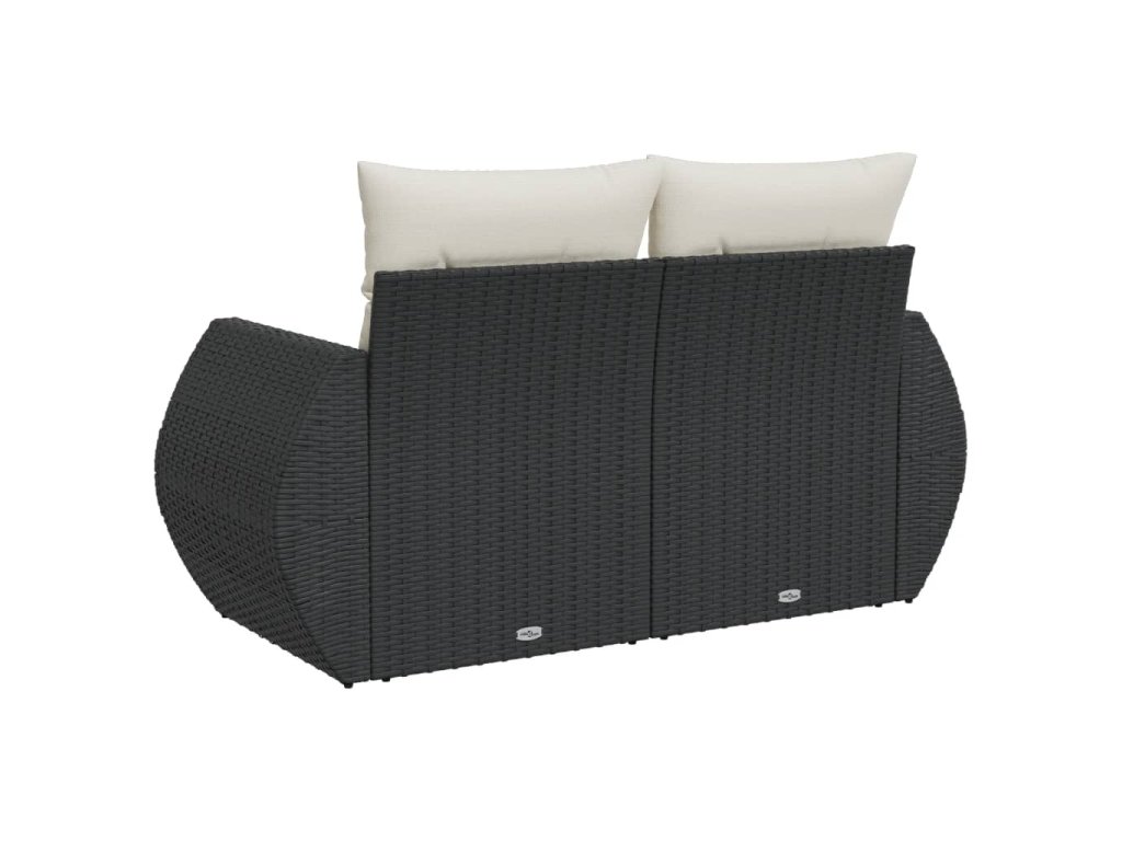 Zahradní pohovka s poduškami 2místná černá polyratan 366018