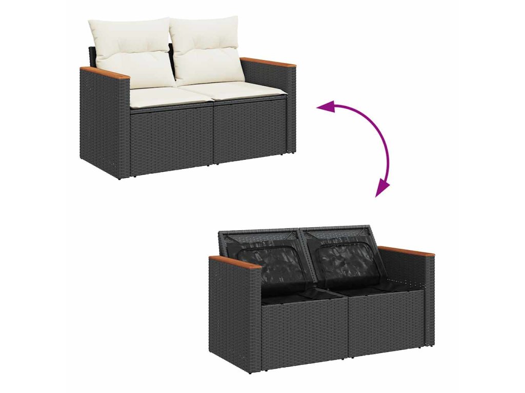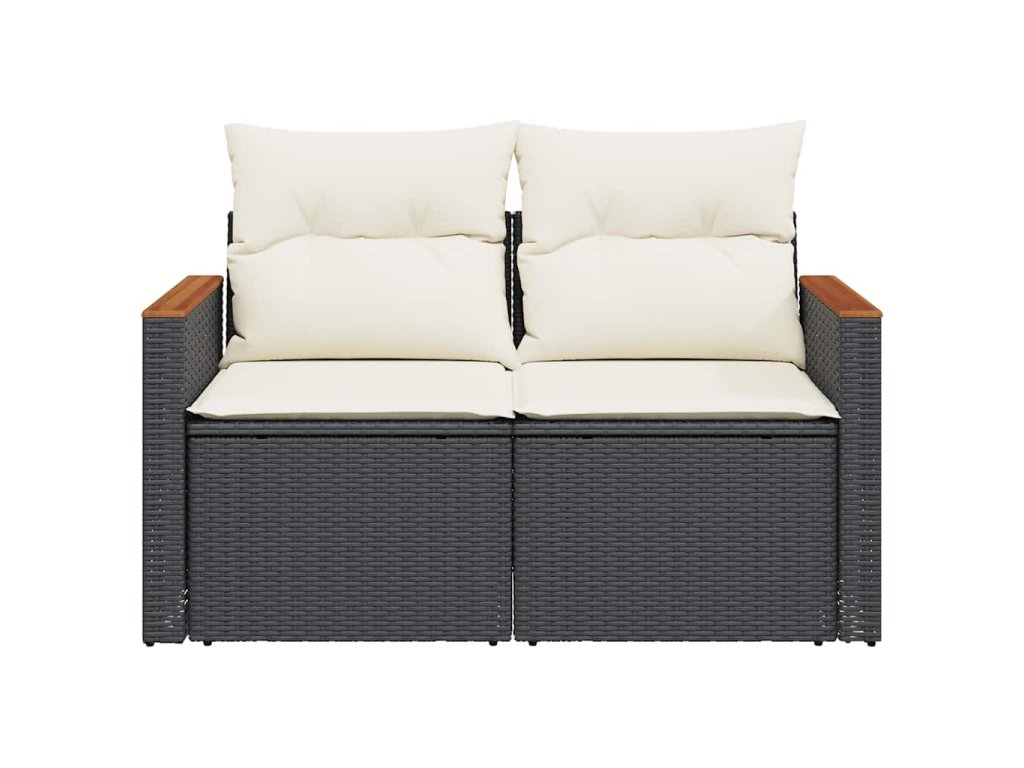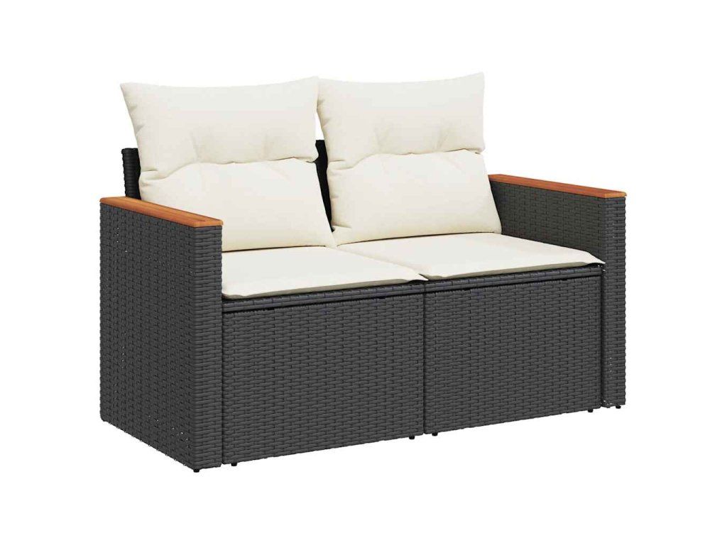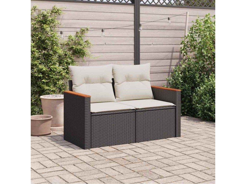 Zahradní pohovka s poduškami 2místná černá polyratan 366020