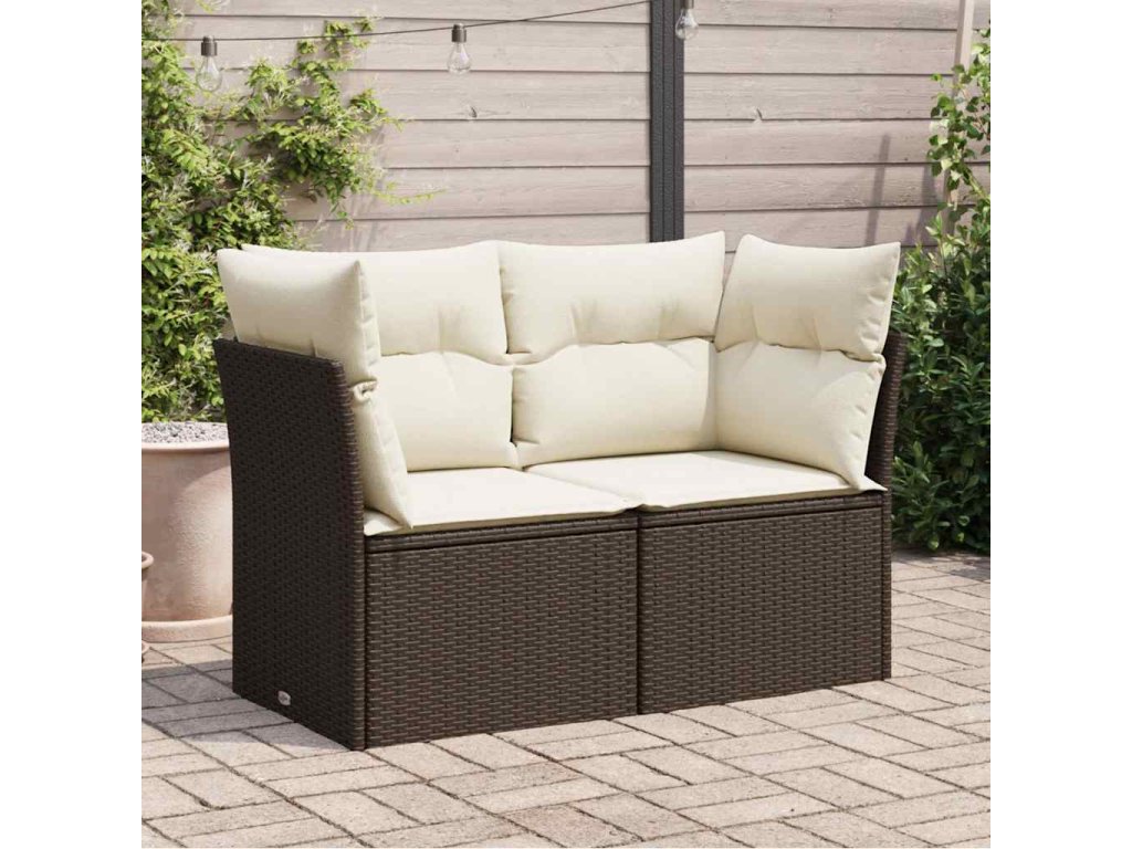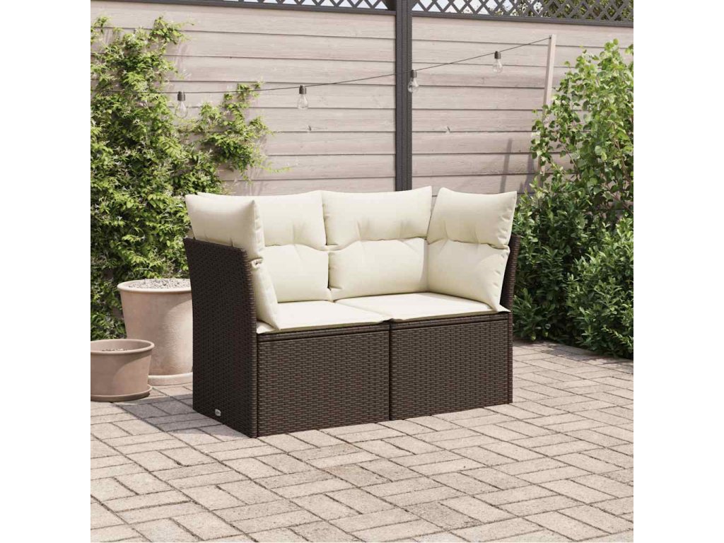 Zahradní pohovka s poduškami 2místná hnědá polyratan 366201