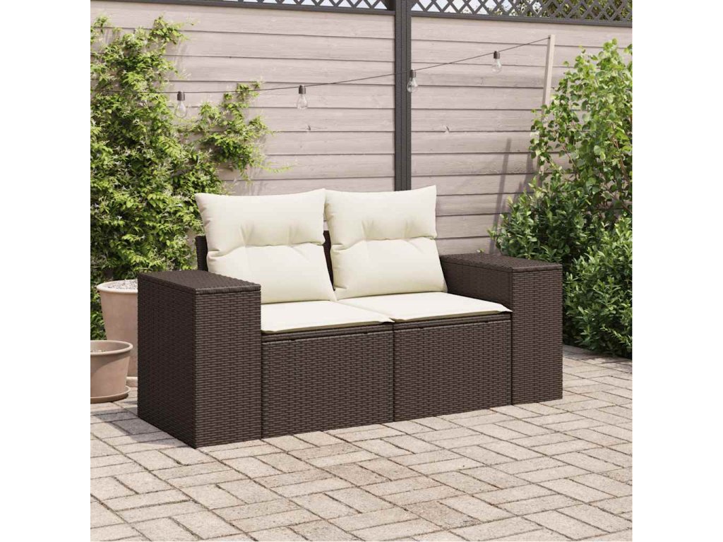 Zahradní pohovka s poduškami 2místná hnědá polyratan 366212