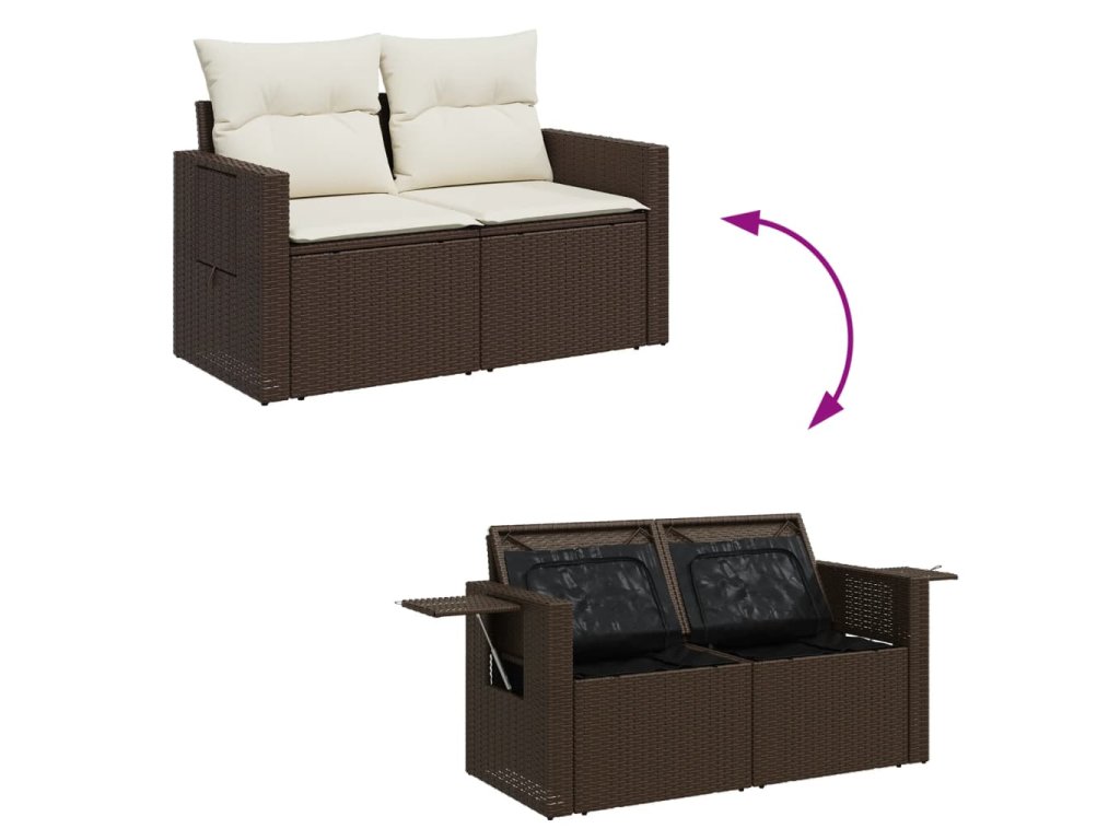 Zahradní pohovka s poduškami 2místná hnědá polyratan 366221