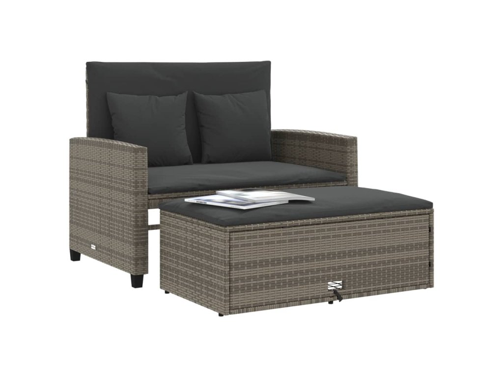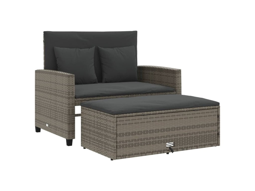 Zahradní pohovka s poduškami 2místná šedá polyratan 365134
