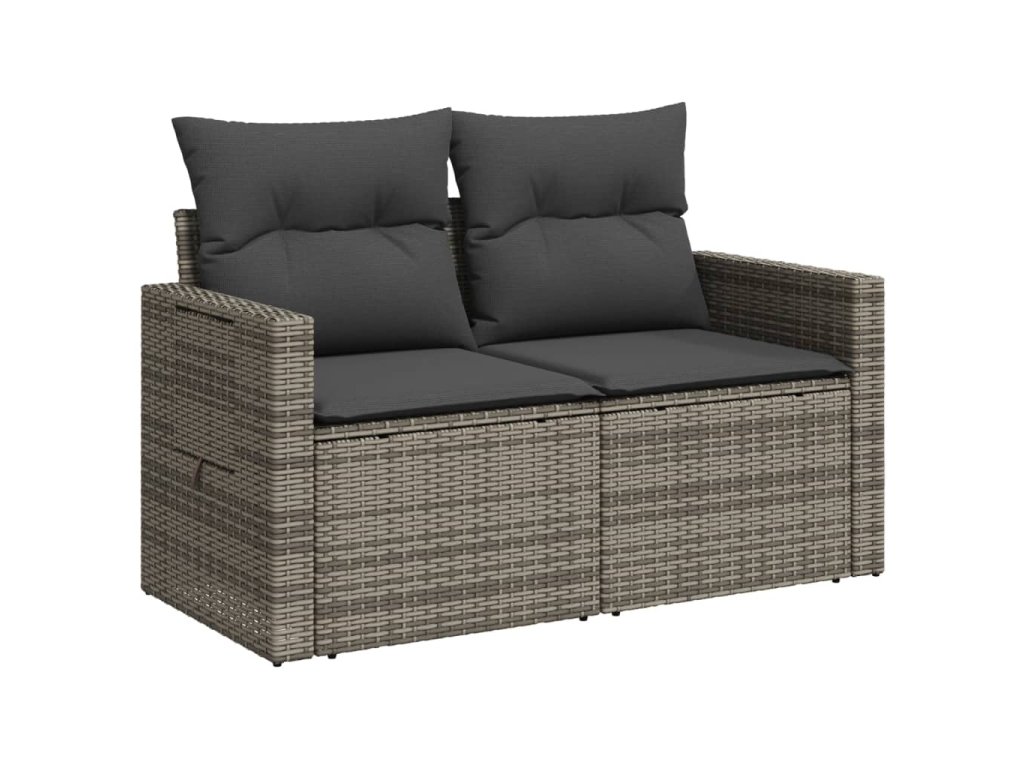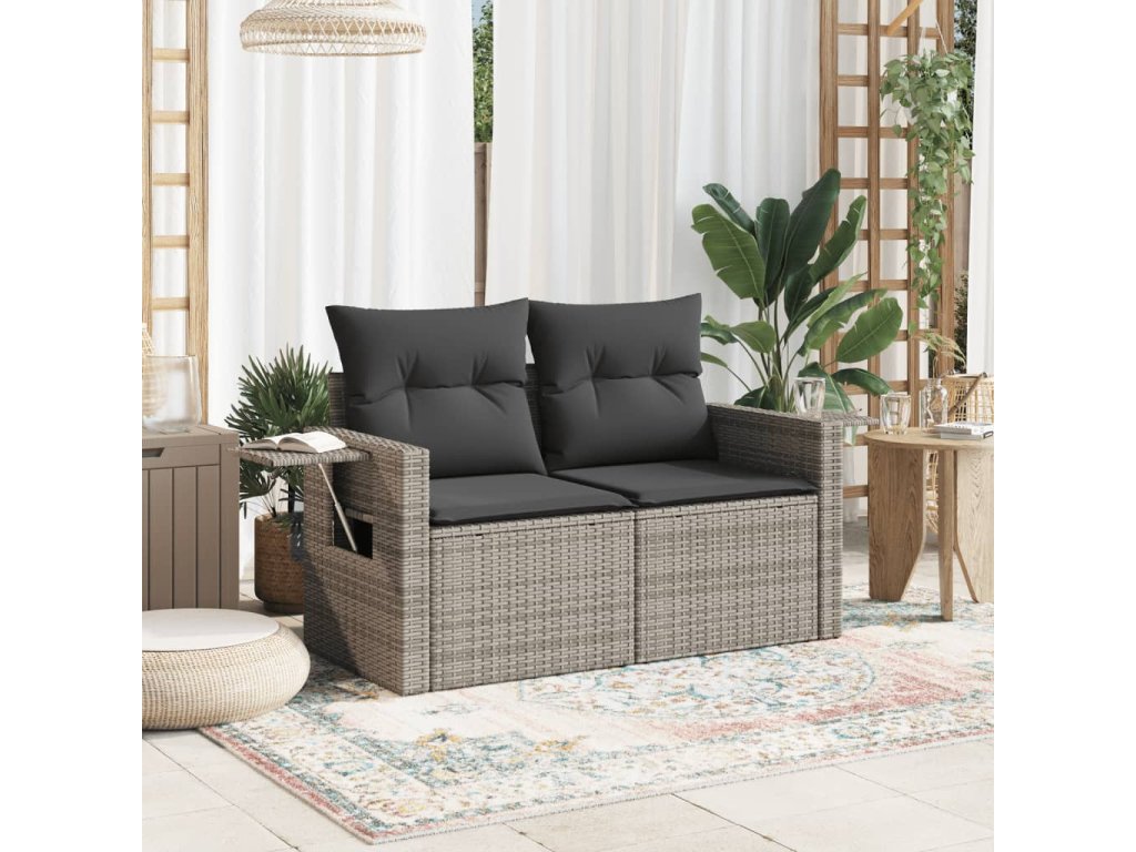Zahradní pohovka s poduškami 2místná šedá polyratan 366123