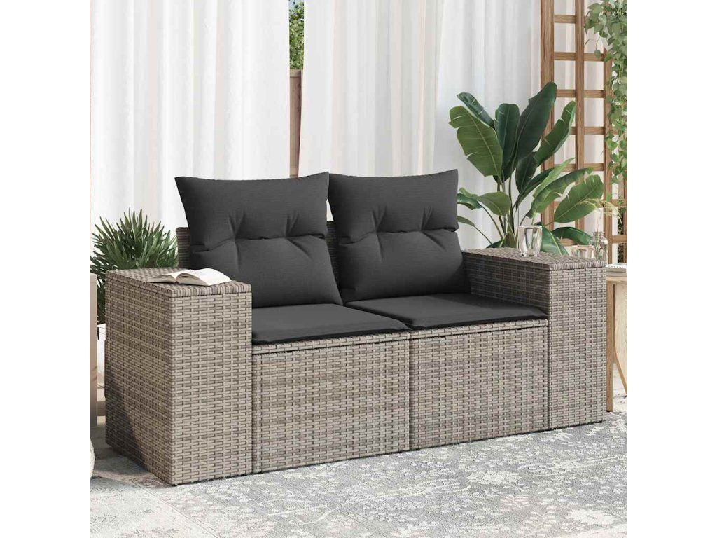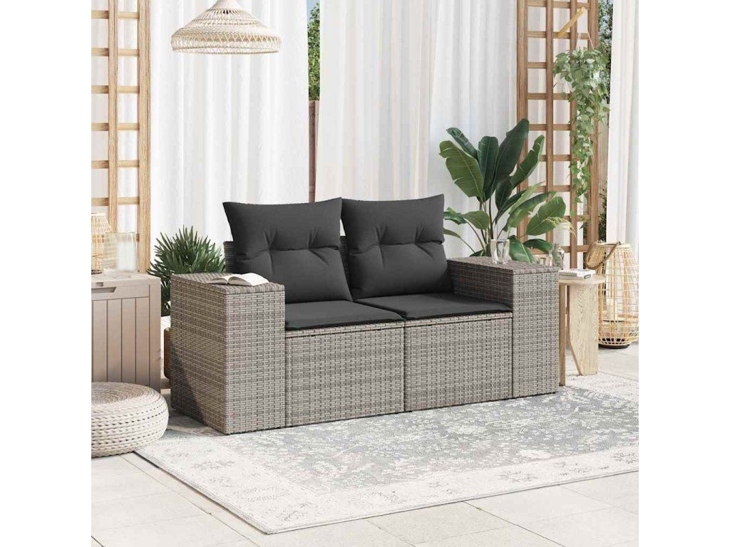 Zahradní pohovka s poduškami 2místná šedá polyratan 366143