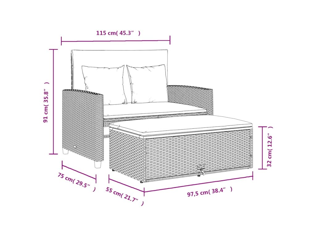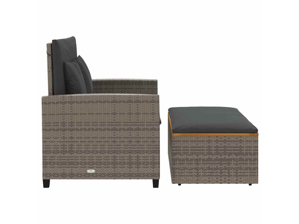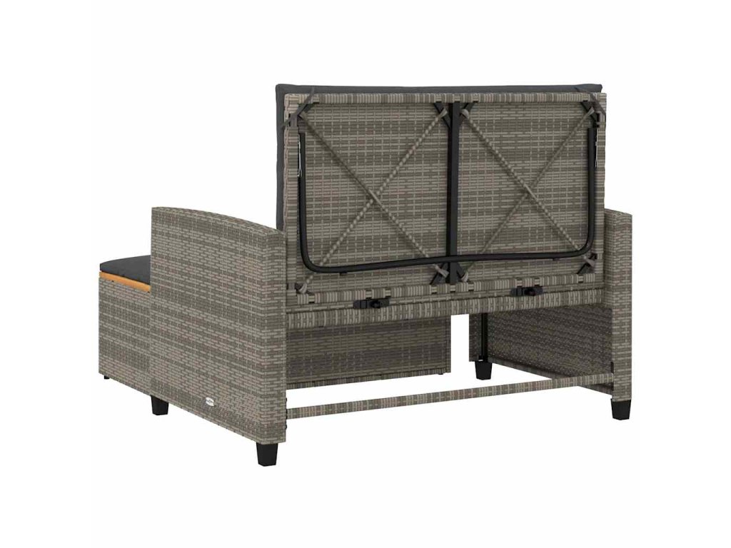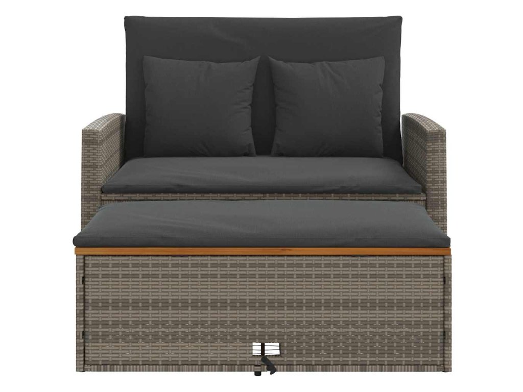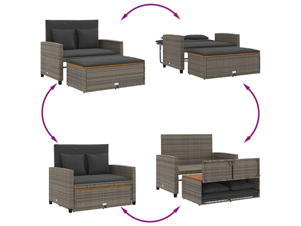 - Všestranná funkčnost: Tento venkovní nábytek lze použít jako dvoumístnou lavici nebo rozkládací pohovku. Sklopením opěradla a vytažením taburetu zpod lavice jej můžete snadno změnit na lůžko. Opěrné panely za opěradly dodávají posteli na stabilitě.