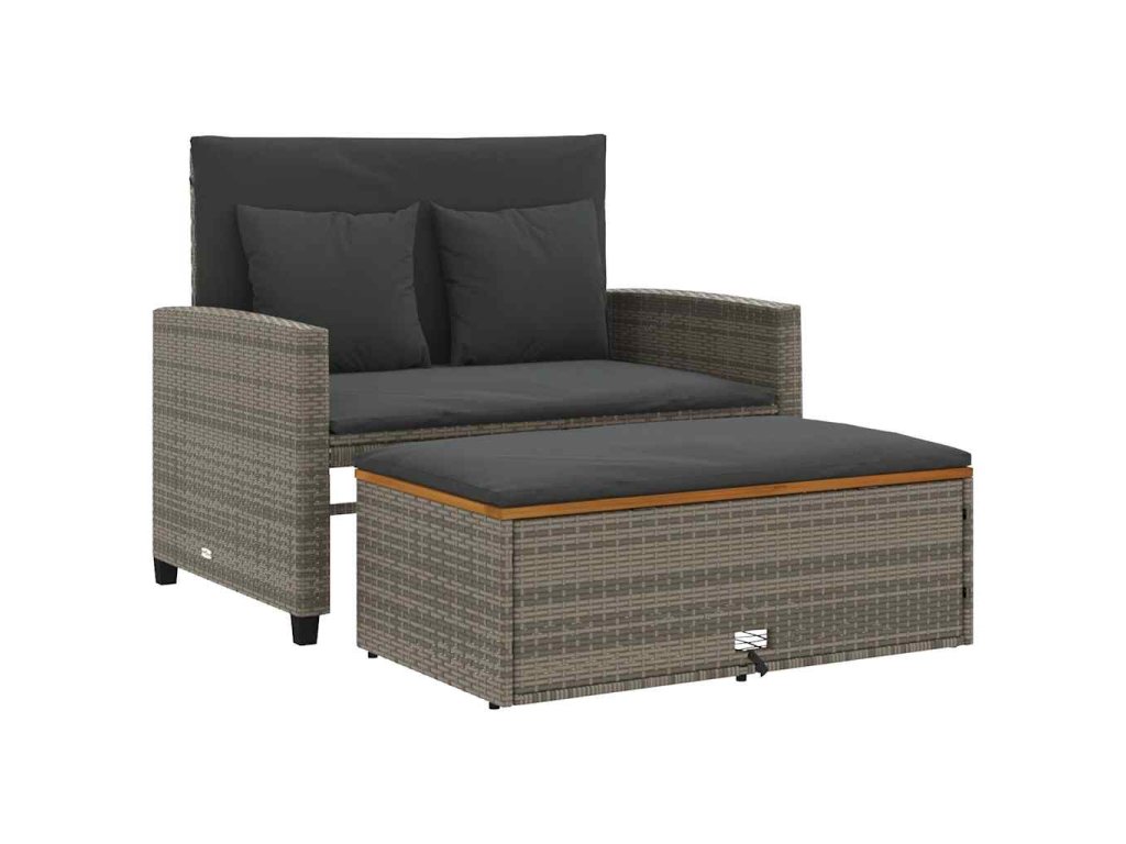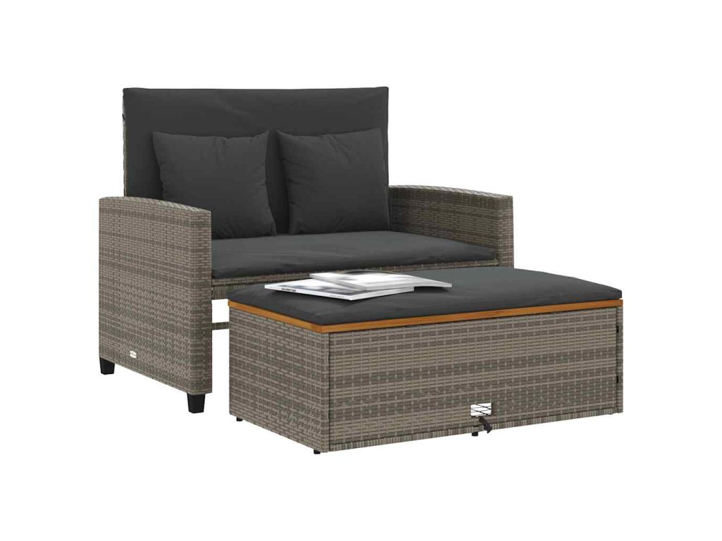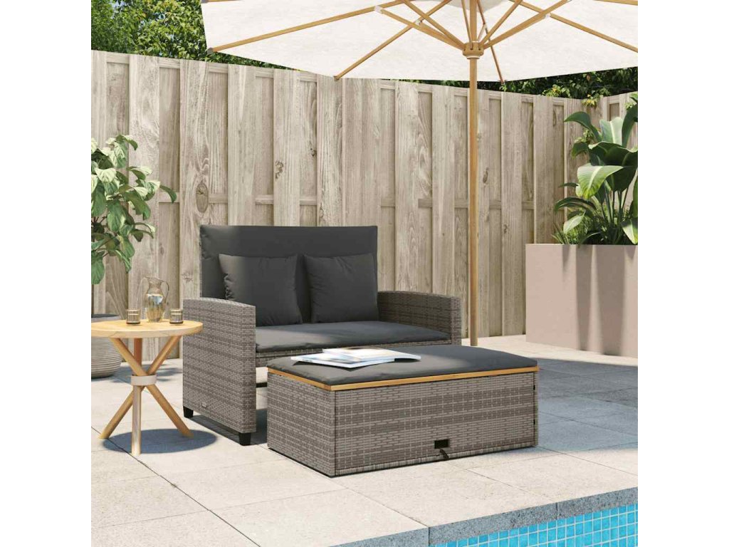 Zahradní pohovka s poduškami 2místná šedá polyratan a akácie 365142