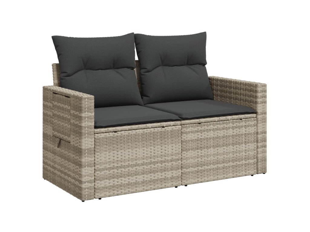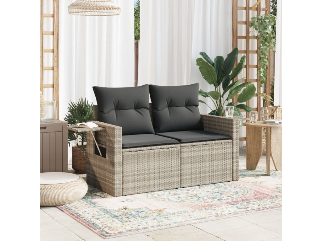 Zahradní pohovka s poduškami 2místná světle šedá polyratan 366185