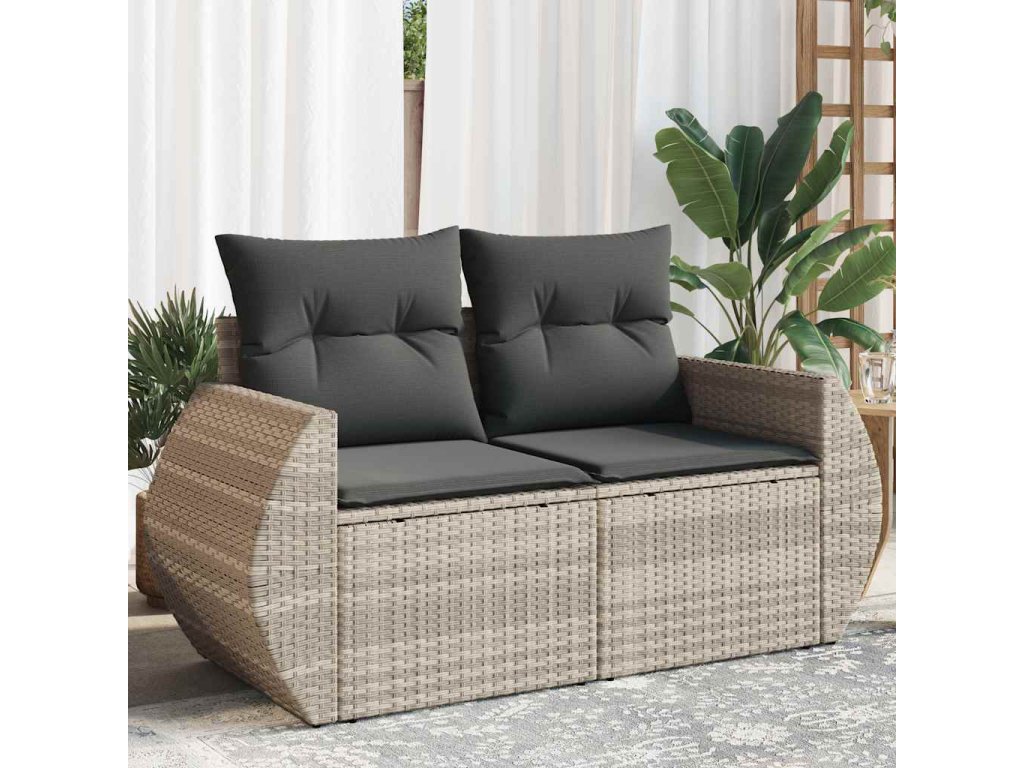 Zahradní pohovka s poduškami 2místná světle šedá polyratan 366186