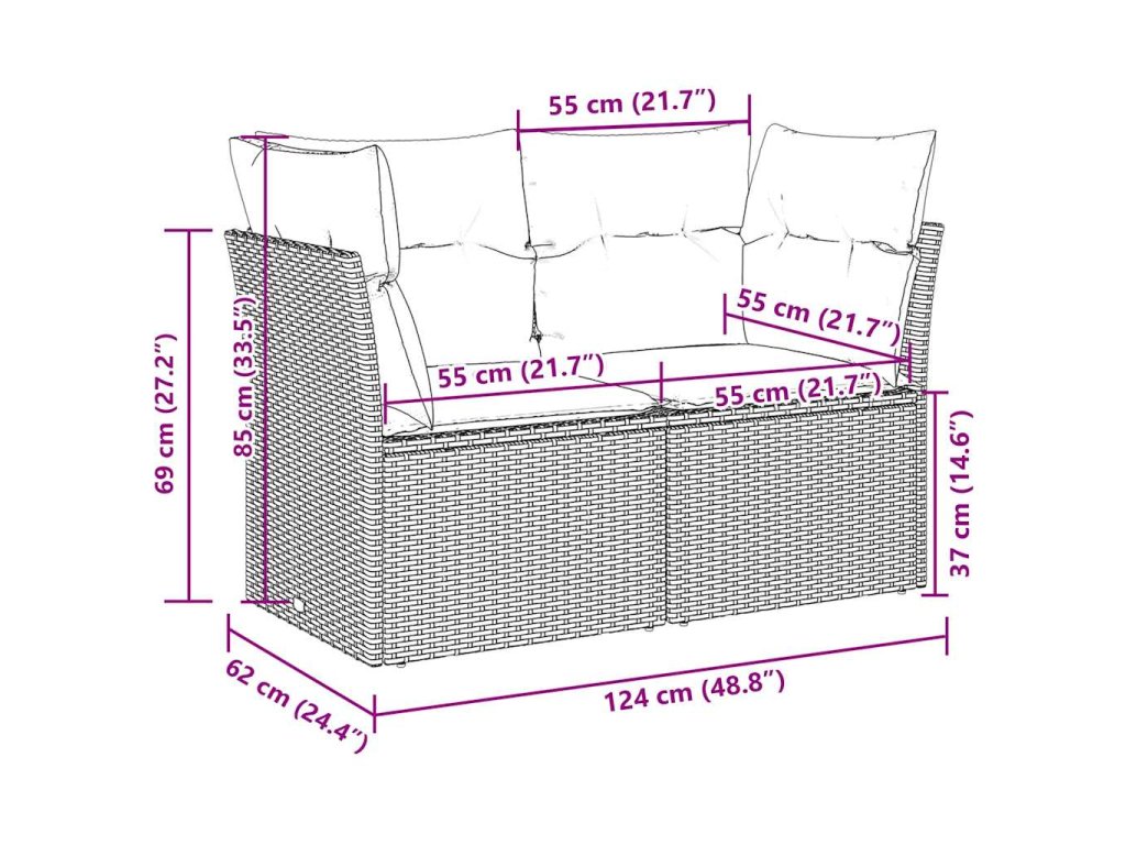 Zahradní pohovka s poduškami 2místná světle šedá polyratan 366192