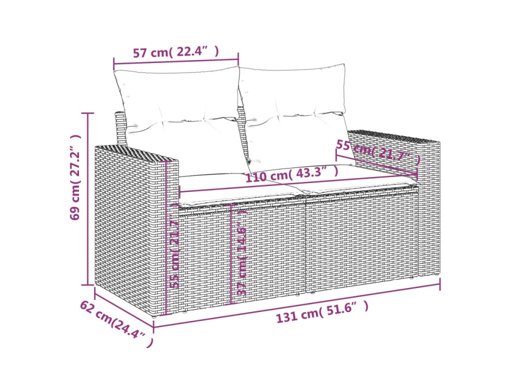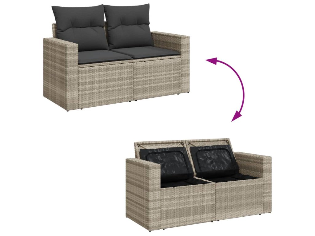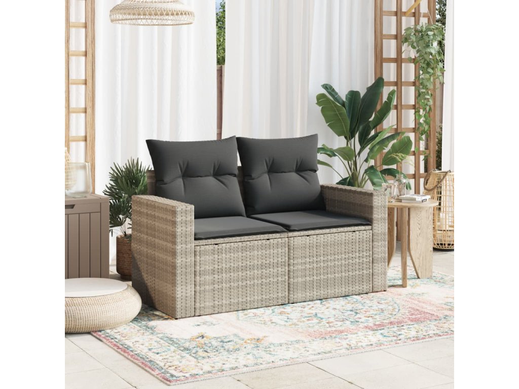 Zahradní pohovka s poduškami 2místná světle šedá polyratan 366195