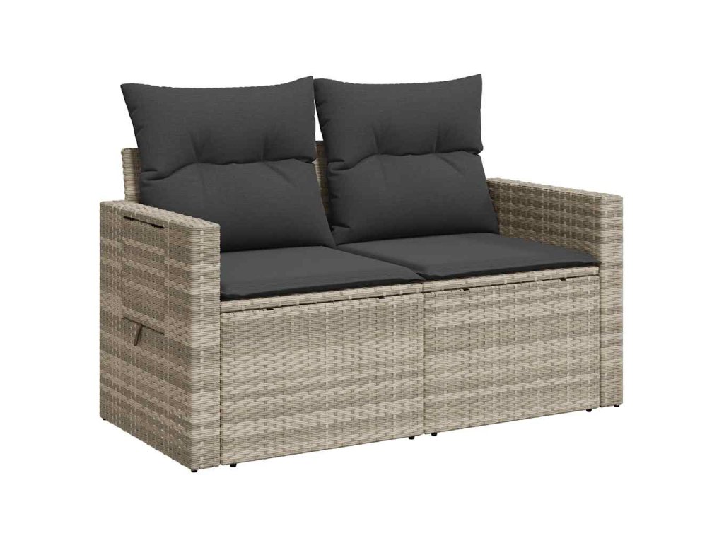 Zahradní pohovka s poduškami 2místná světle šedá polyratan 366196