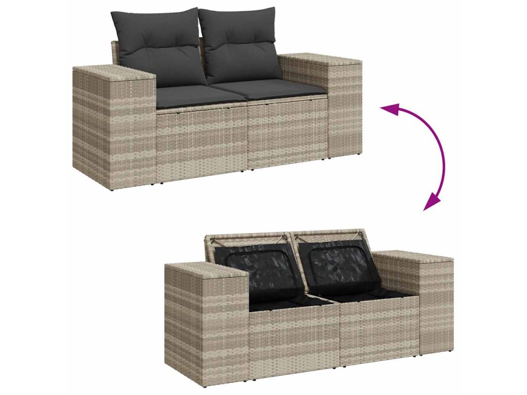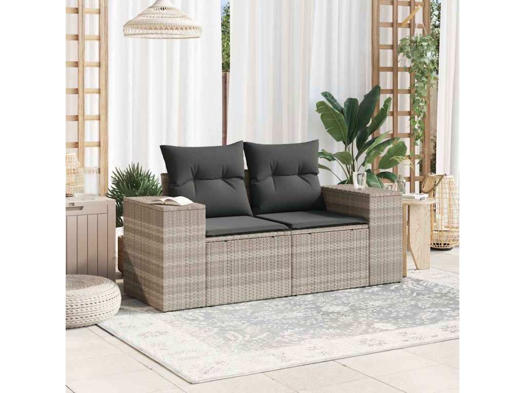 Zahradní pohovka s poduškami 2místná světle šedá polyratan 366198