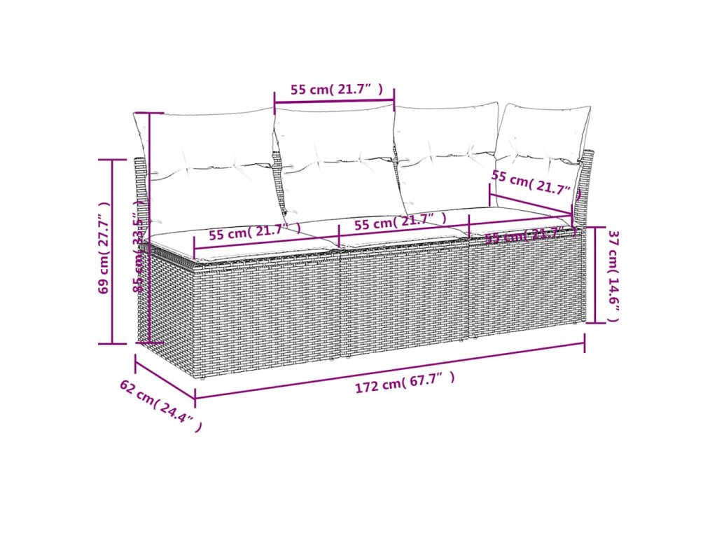 - Celkové rozměry pohovky: 172 x 62 x 69 cm (Š x H x V)