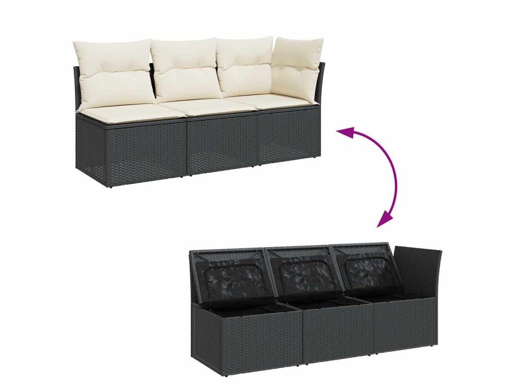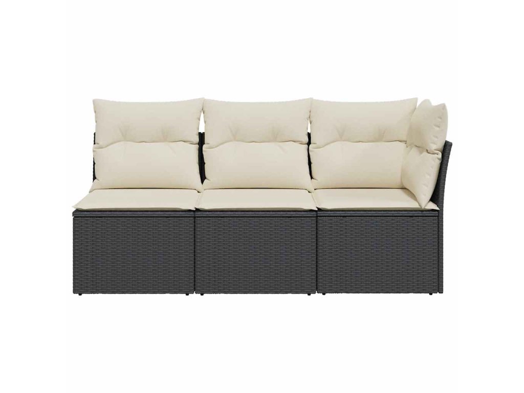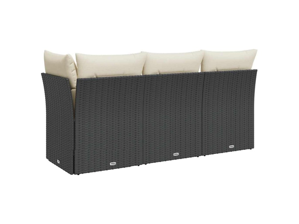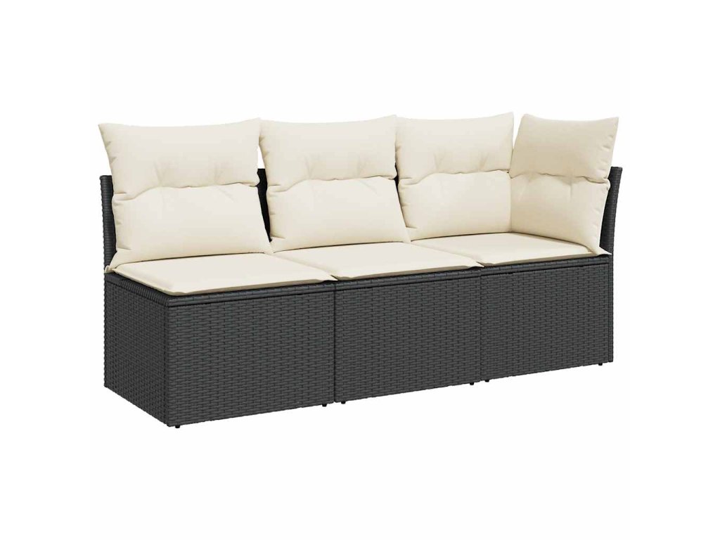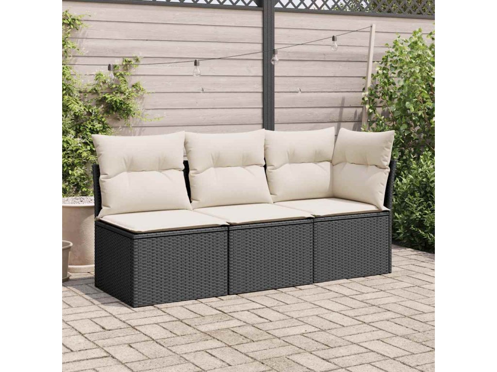 Zahradní pohovka s poduškami 3místná černá polyratan 366014