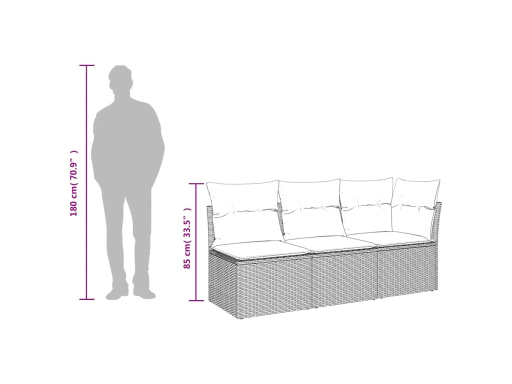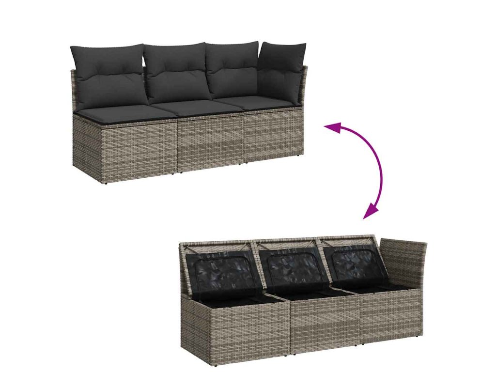 Zahradní pohovka s poduškami 3místná šedá polyratan 366138