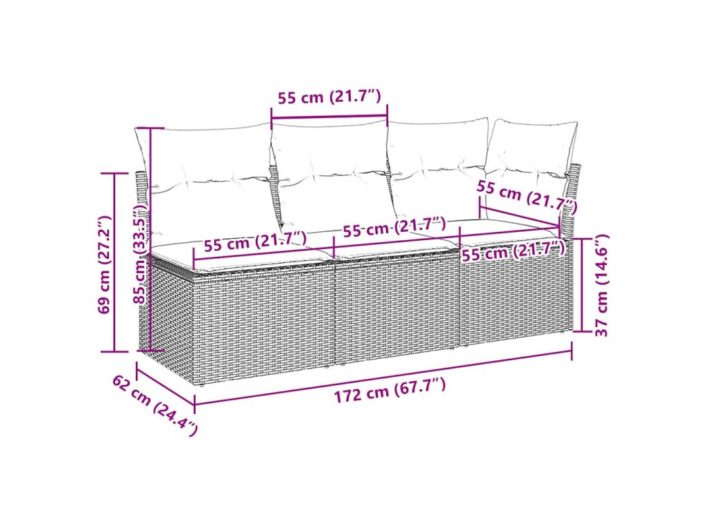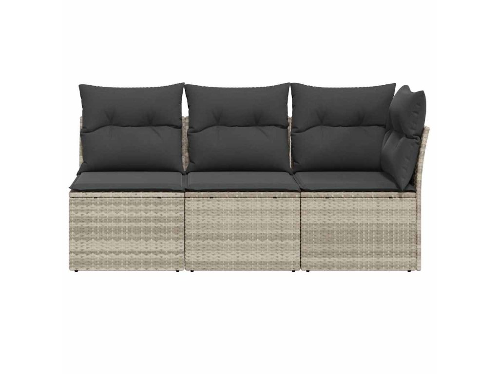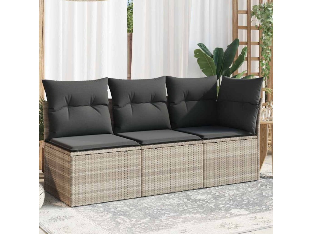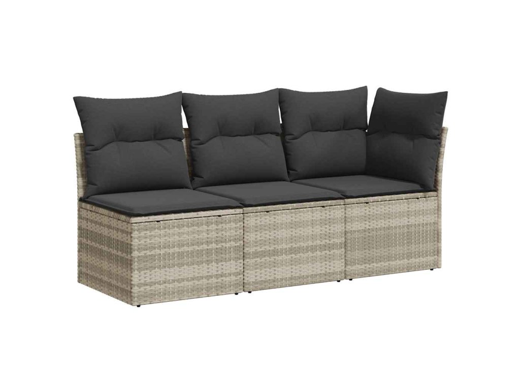 Zahradní pohovka s poduškami 3místná světle šedá polyratan 366193