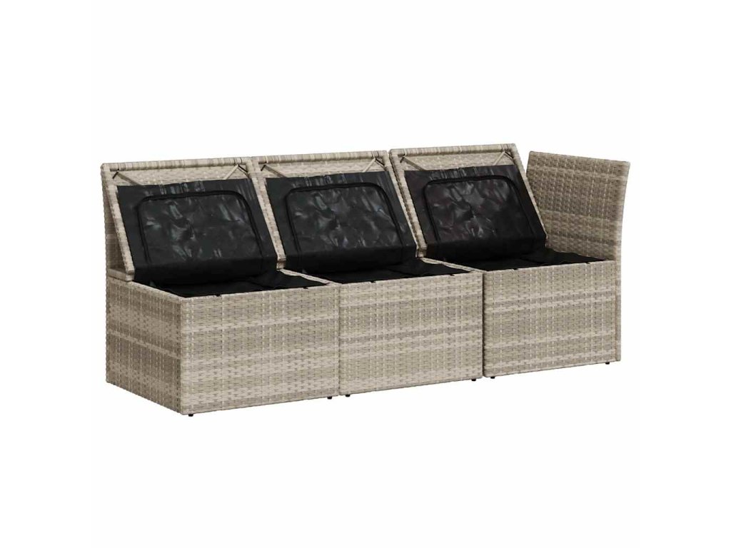 - Úložný prostor s voděodolným vakem: Každý zahradní sedací díl má úložný prostor pod sedákem, který je opatřen voděodolnou vložkou a poslouží vám k ukládání podušek, hraček a dalších věcí. Vnitřní vaky mají horní kryt a lze je bezpečně připevnit k sedákům pomocí suchého zipu, což zaručí větší stabilitu.