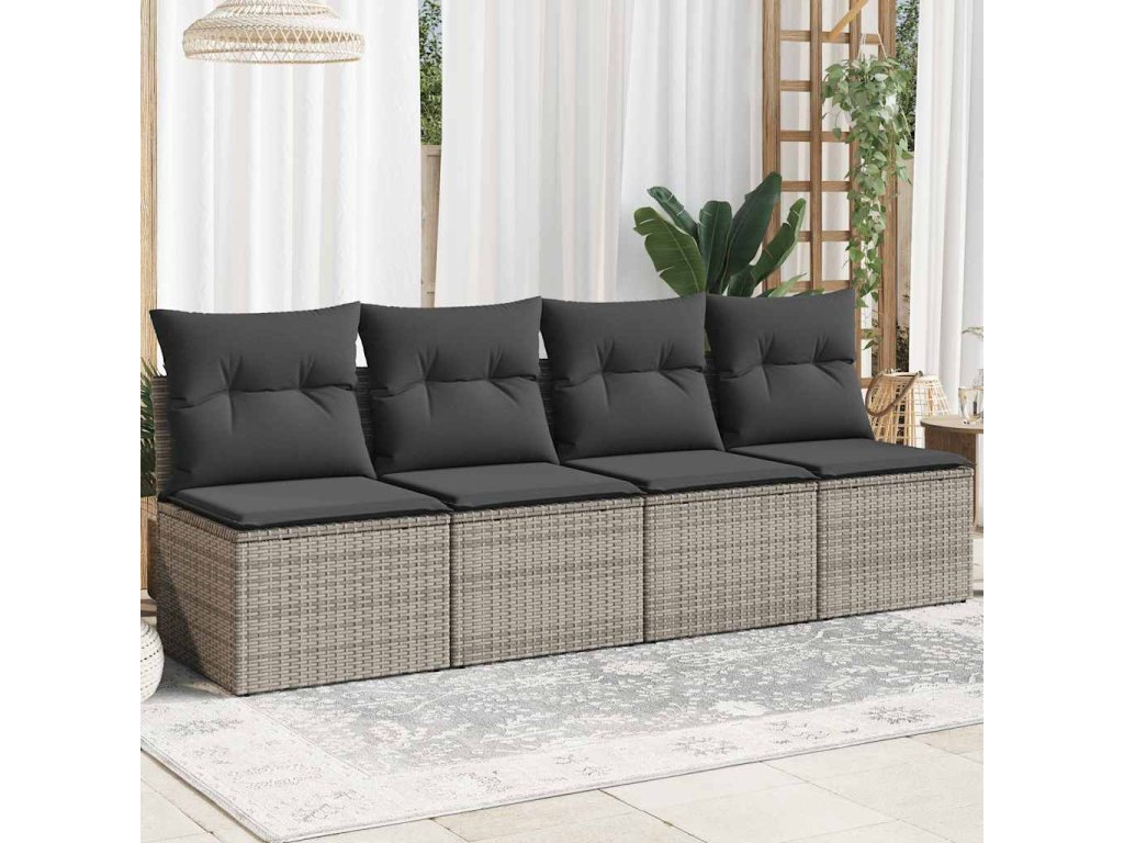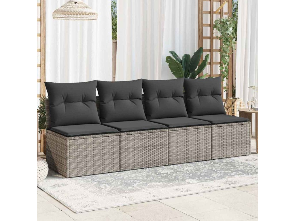Zahradní pohovka s poduškami 4místná šedá polyratan 366116