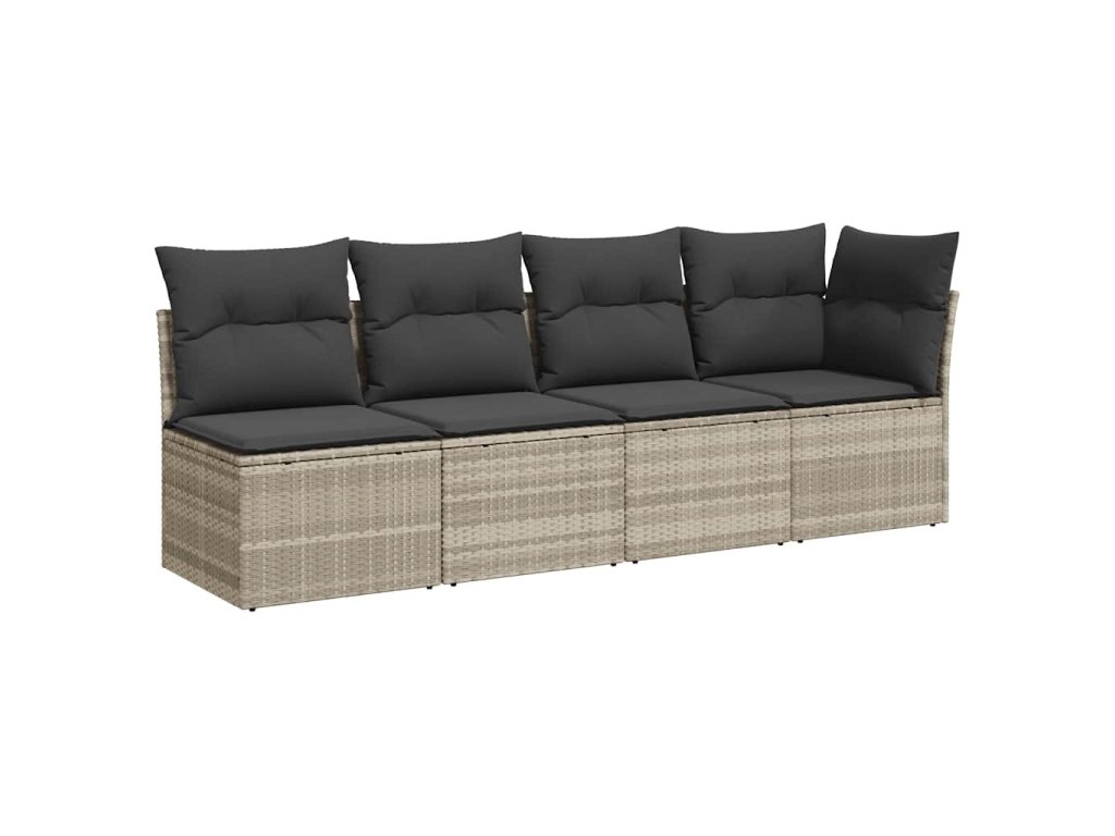 Zahradní pohovka s poduškami 4místná světle šedá polyratan 366177