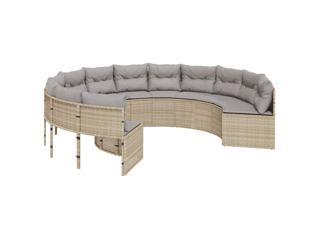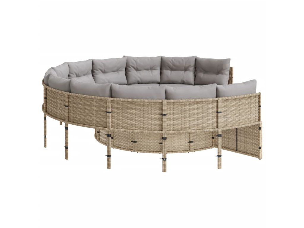 Zahradní pohovka s poduškami kulatá béžová polyratan 3318542