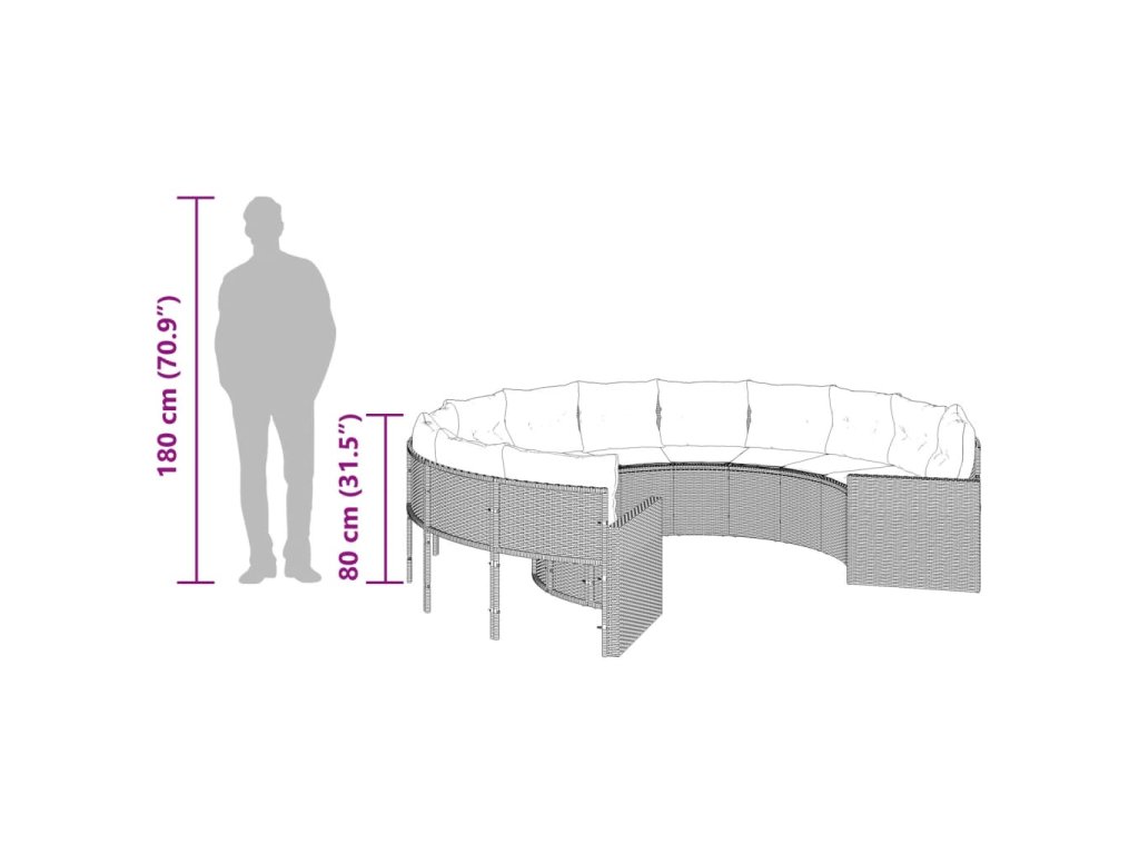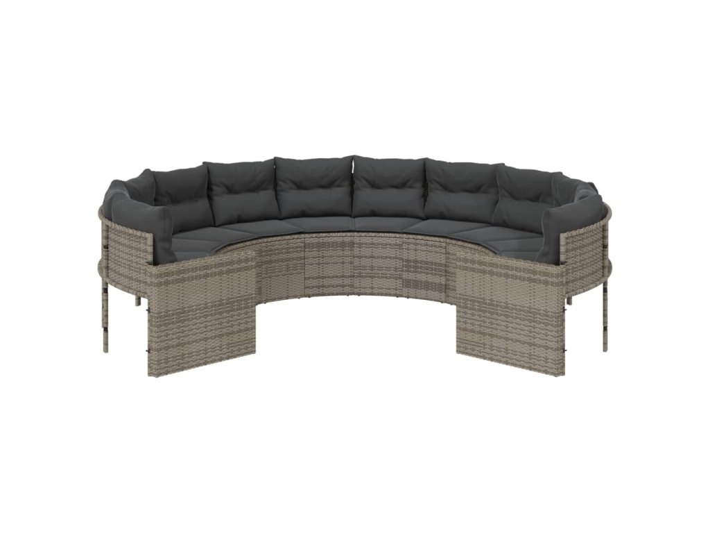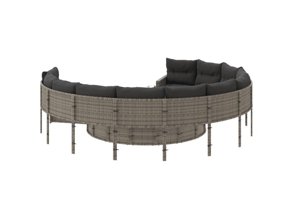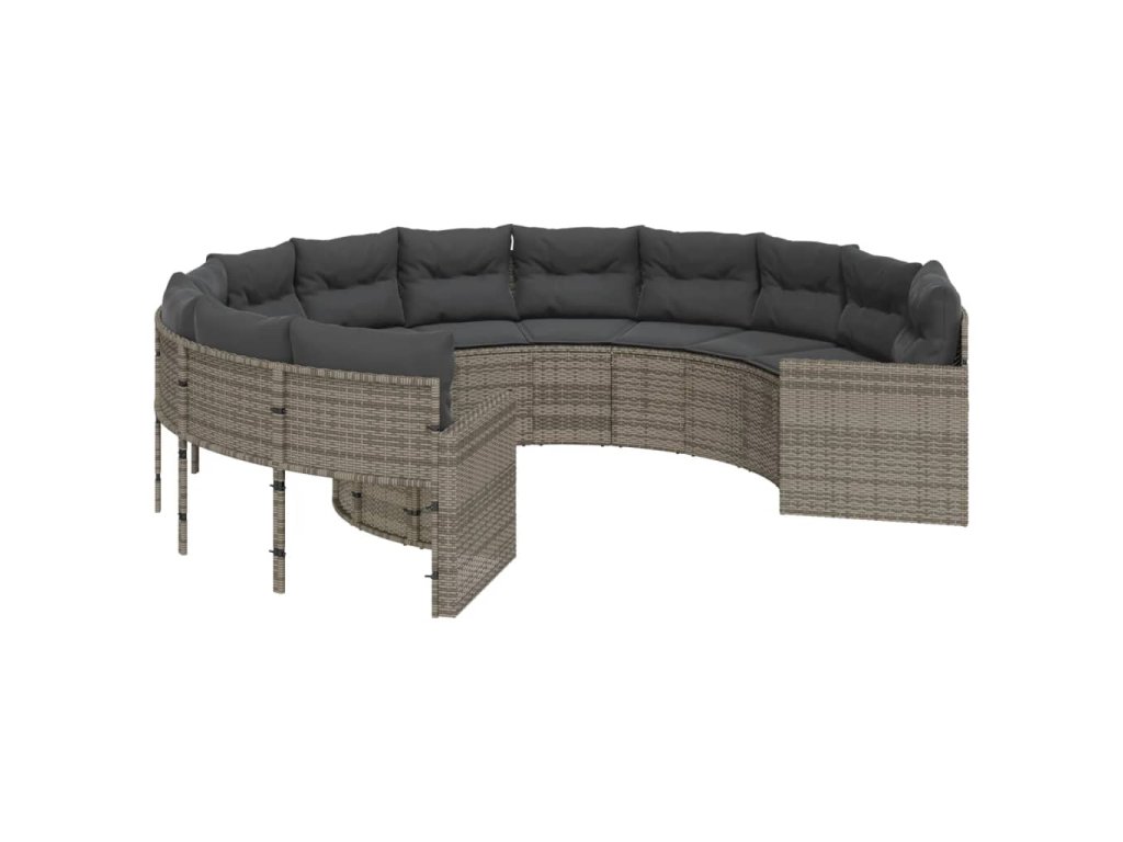 Zahradní pohovka s poduškami kulatá šedá polyratan 3318532