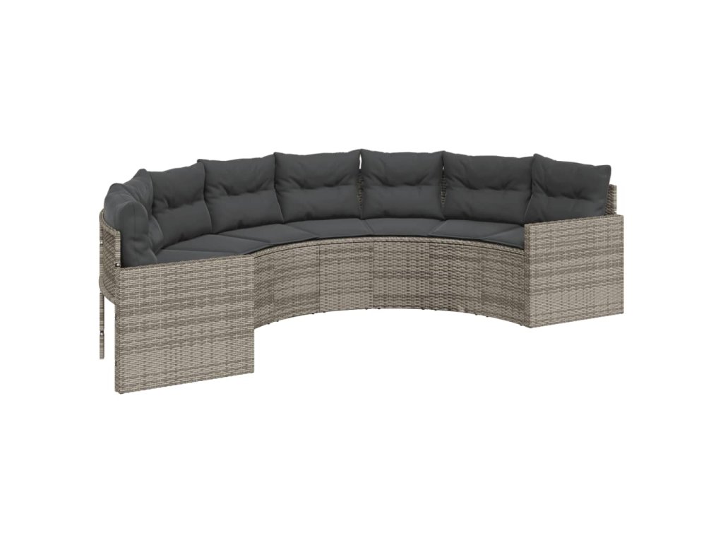 Zahradní pohovka s poduškami půlkruhová šedá polyratan 3318514