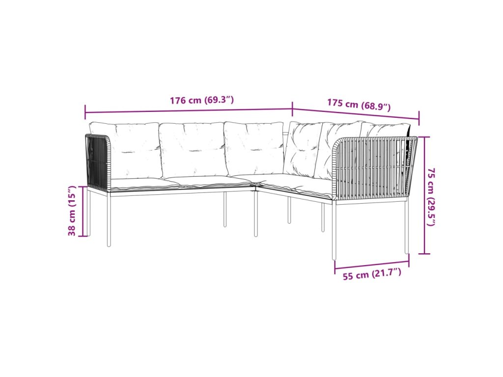 Tato zahradní pohovka ve tvaru písmene L je dokonalým doplňkem vaší zahrady, terasy nebo dvorku a poskytne vám pohodlné a příjemné místo, kde si můžete povídat s rodinou a přáteli nebo jen tak odpočívat a užívat si pobyt venku.
