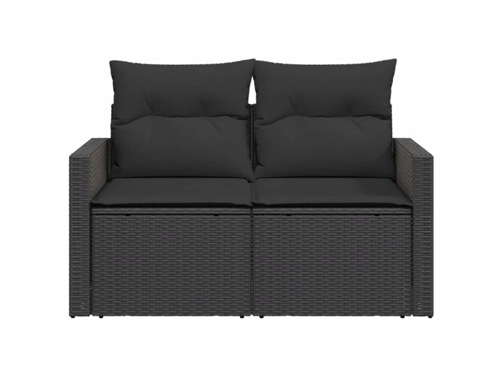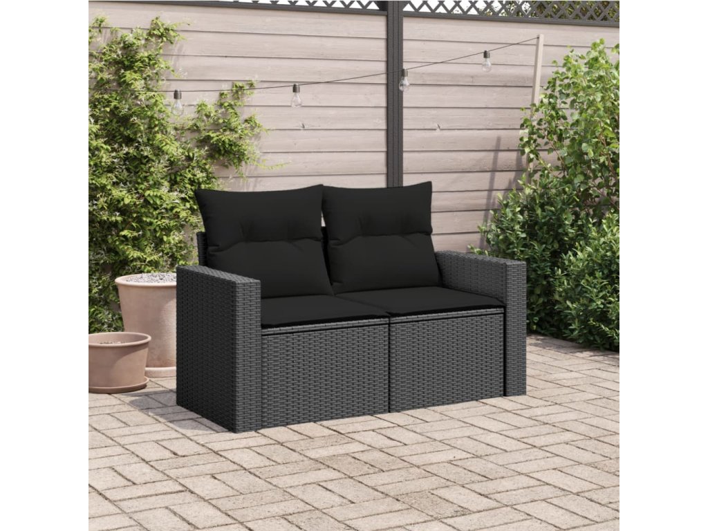 Zahradní pohovka s polštáři pro 2 osoby černá polyratan 365971