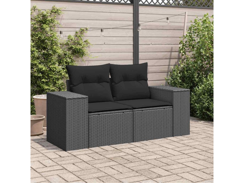 Zahradní pohovka s polštáři pro 2 osoby černá polyratan 365974