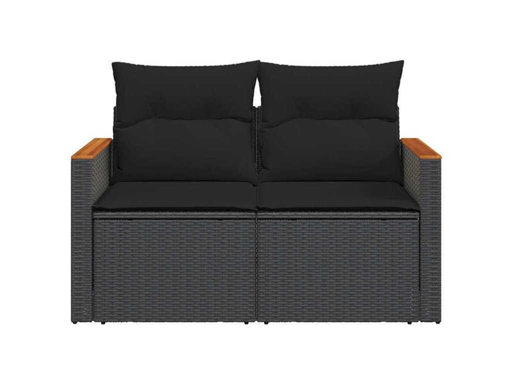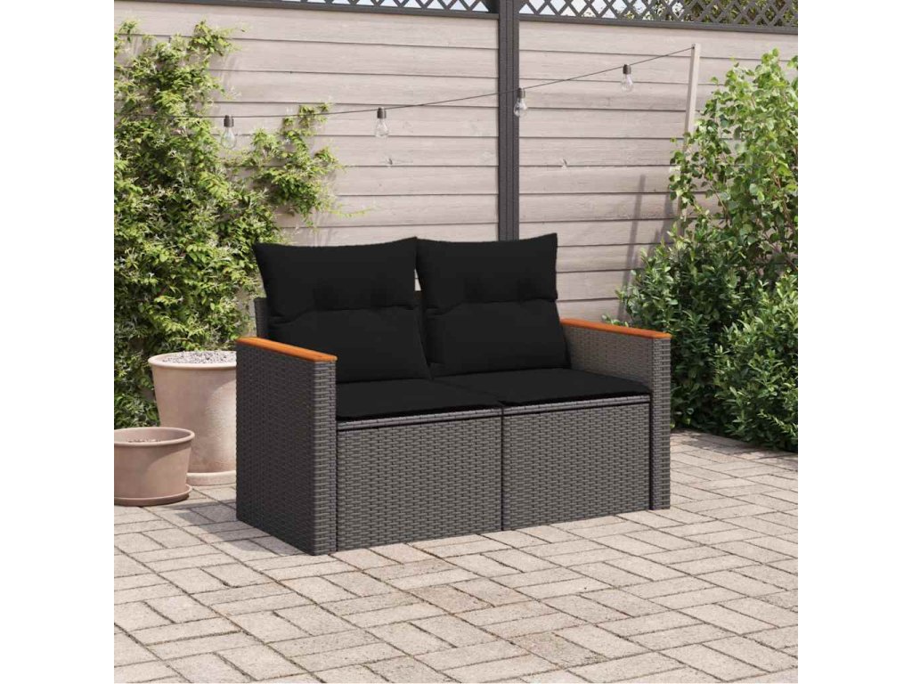 Zahradní pohovka s polštáři pro 2 osoby černá polyratan 365977