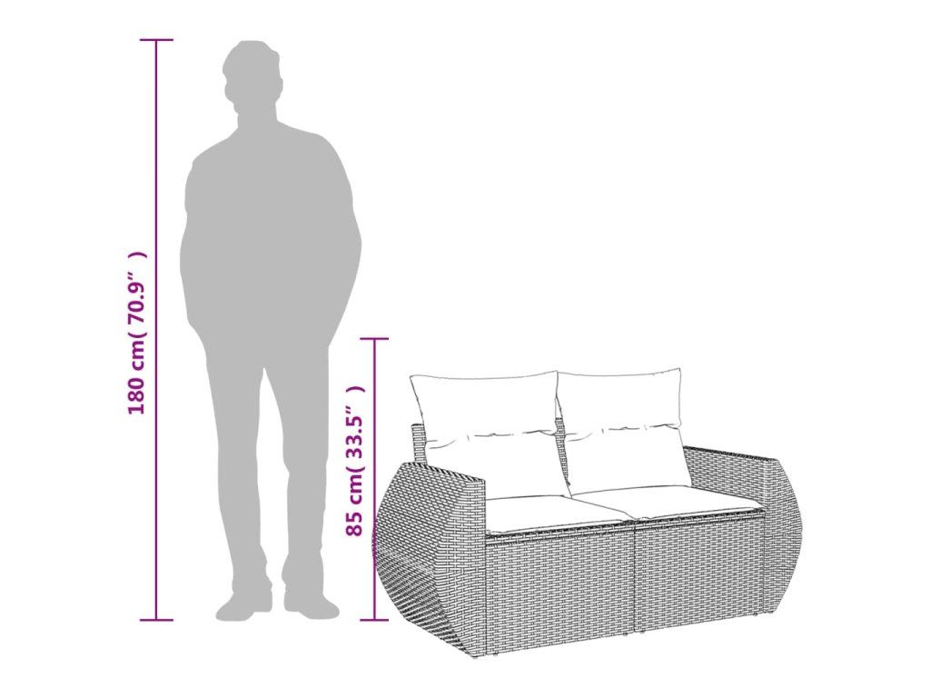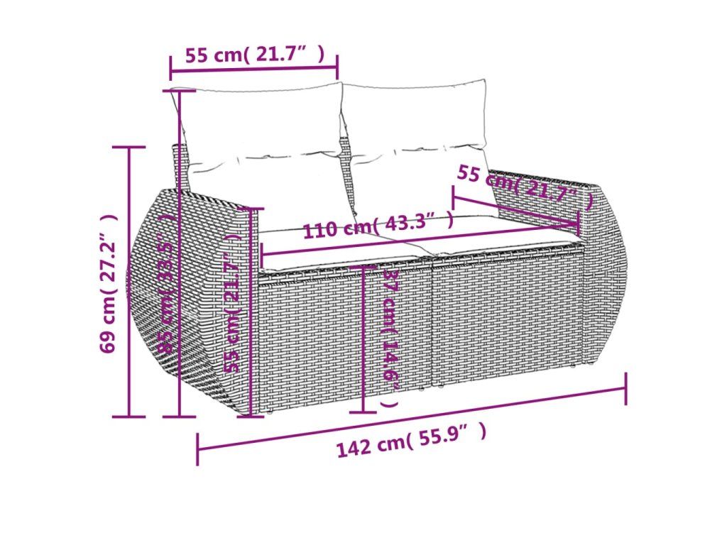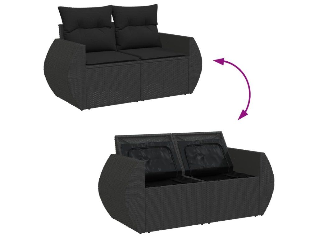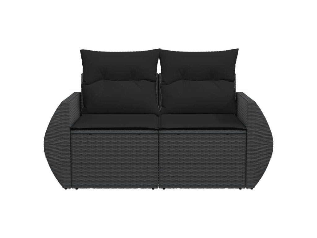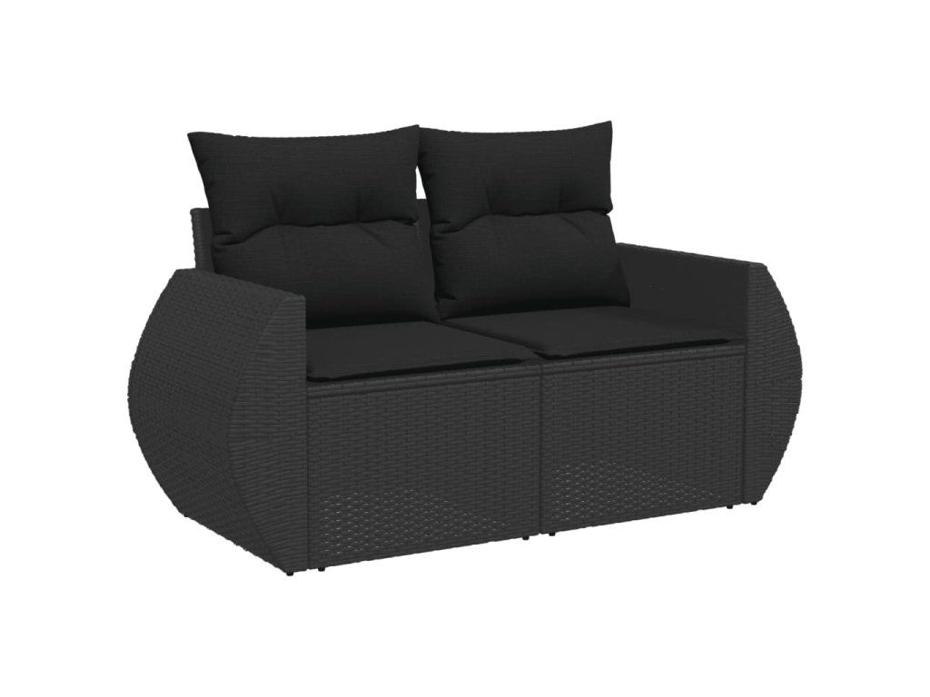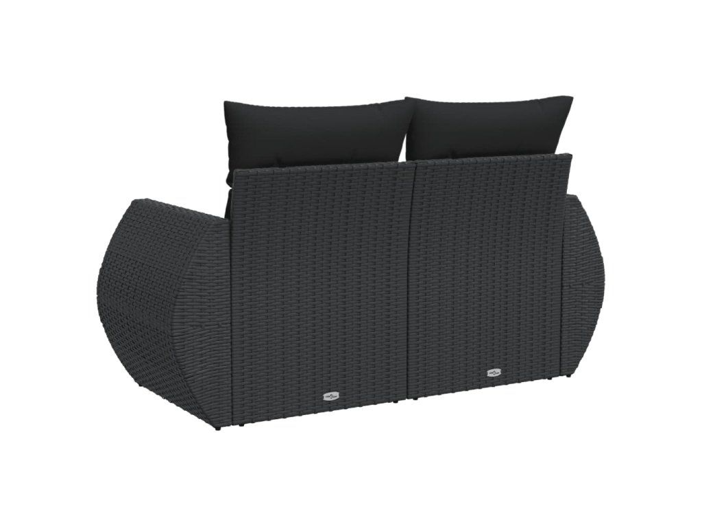 Zahradní pohovka s polštáři pro 2 osoby černá polyratan 365991