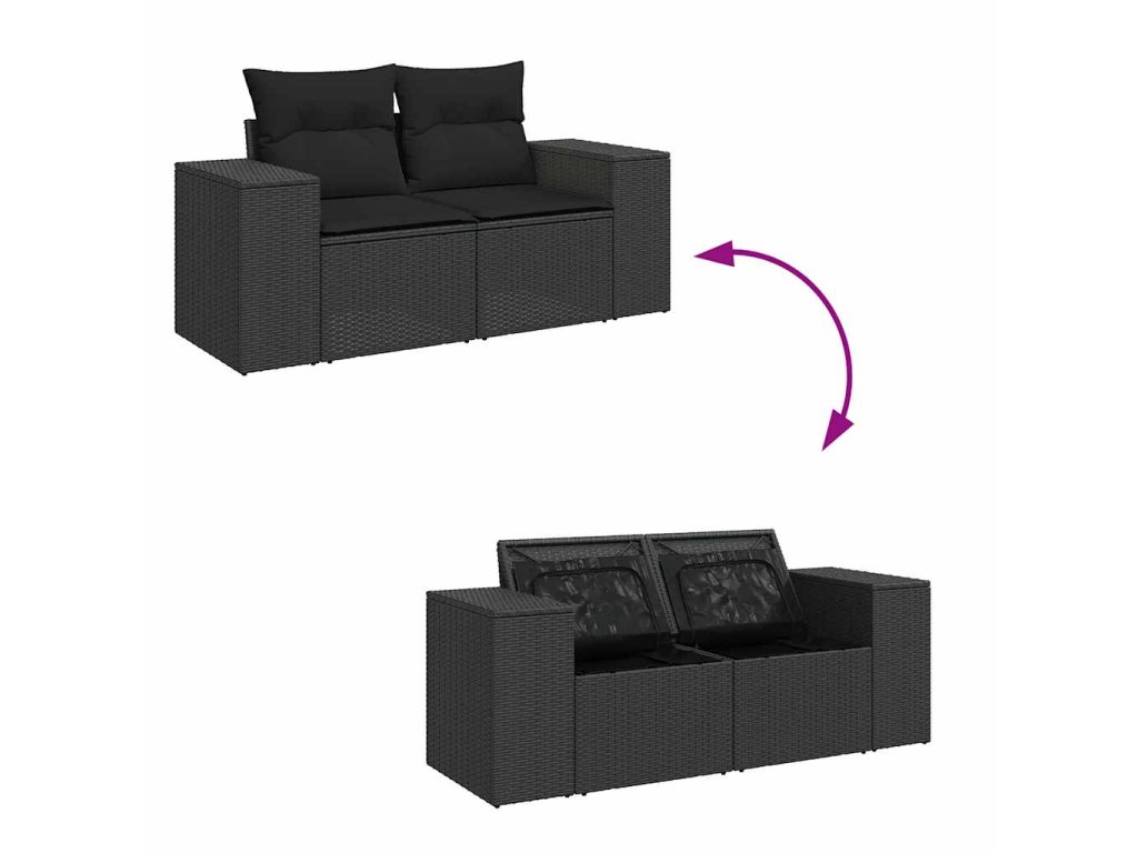 Zahradní pohovka s polštáři pro 2 osoby černá polyratan 365992