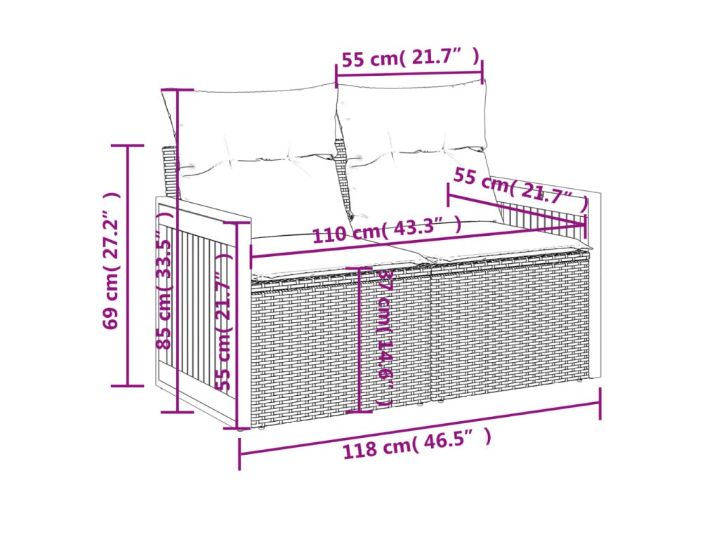 Zahradní pohovka s polštáři pro 2 osoby černá polyratan 365995