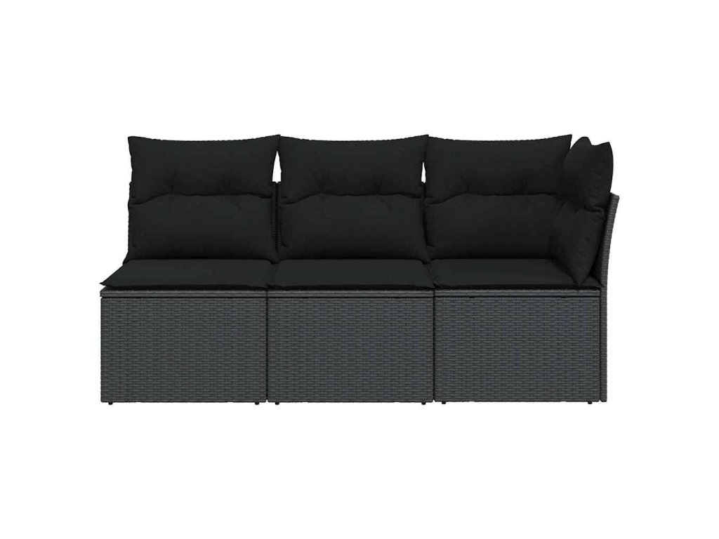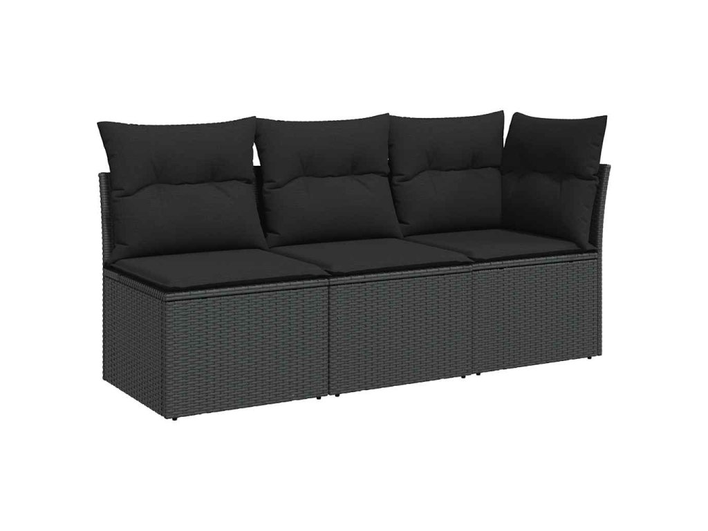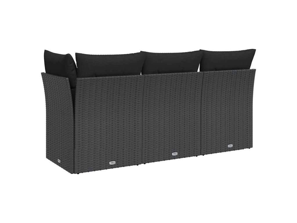 Zahradní pohovka s polštáři pro 3 osoby černá polyratan 365987