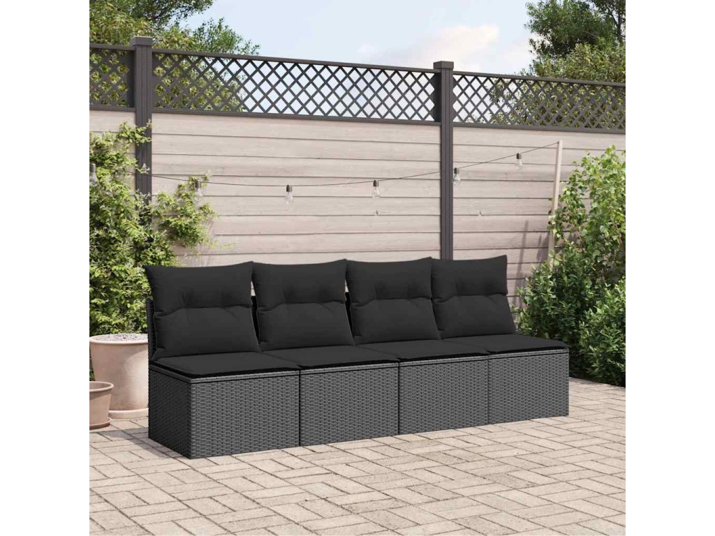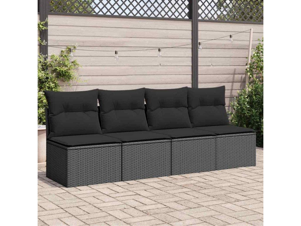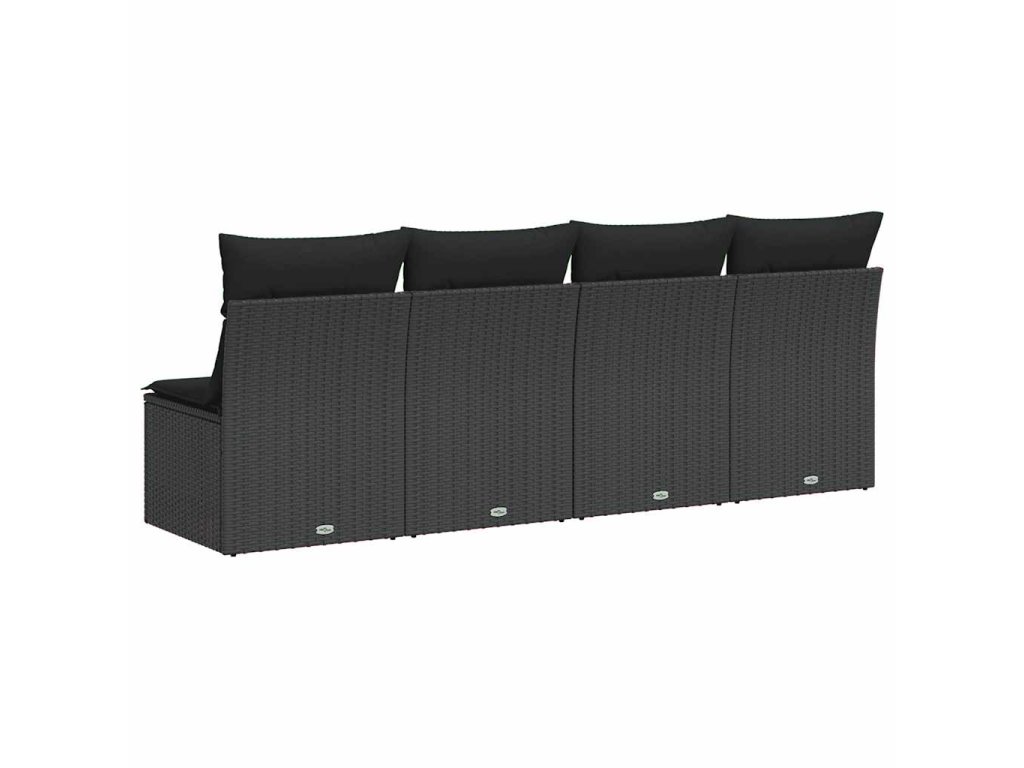 Zahradní pohovka s polštáři pro 4 osoby černá polyratan 365965