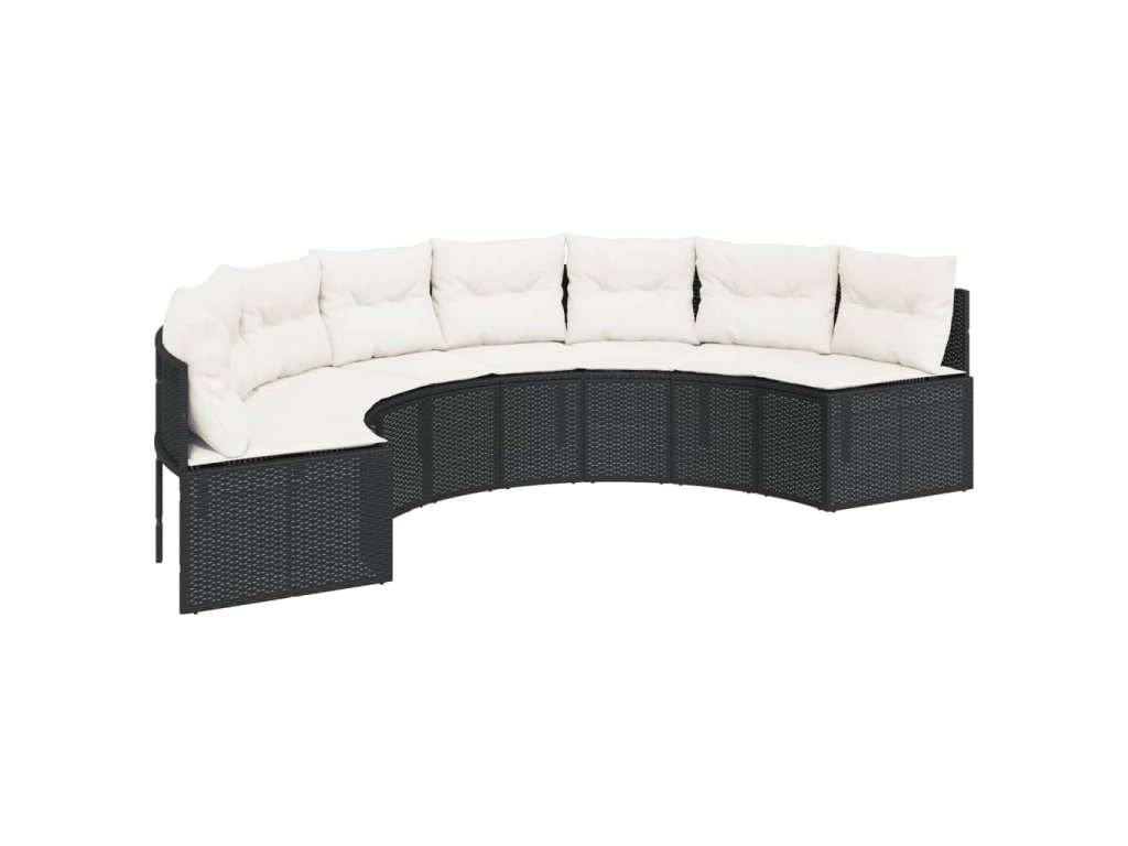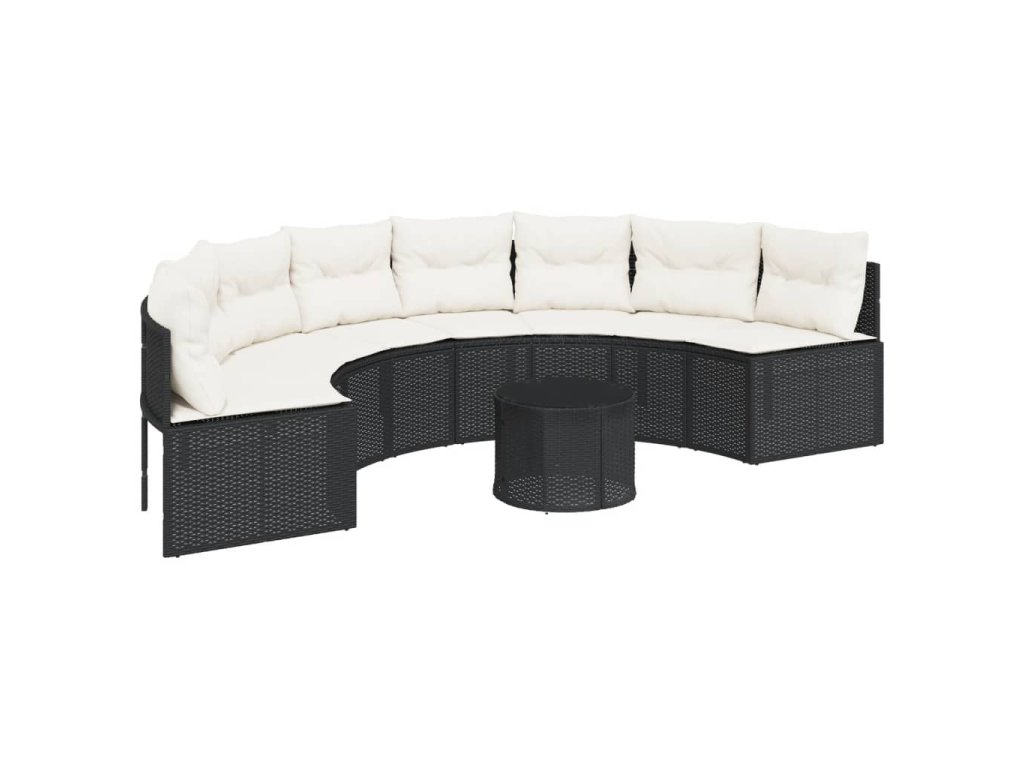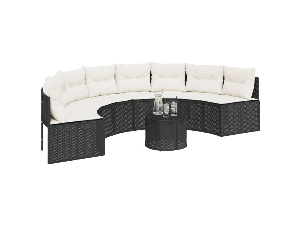 Zahradní pohovka se stolem a podušky půlkruhová černá polyratan 3318526