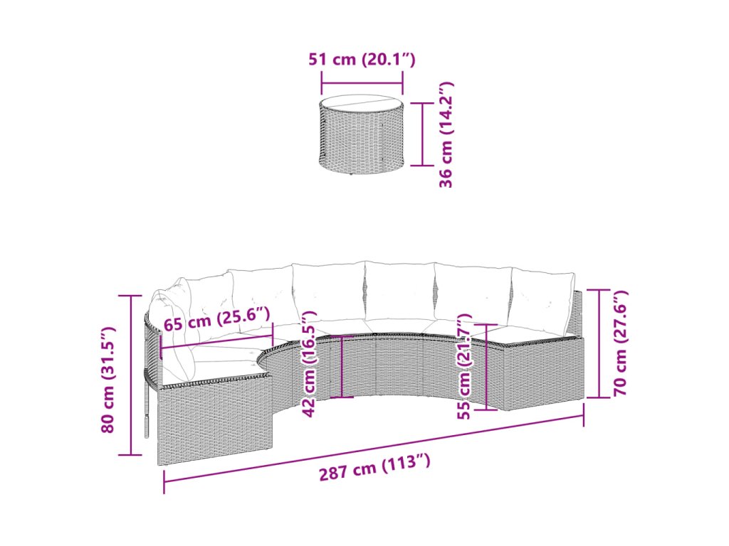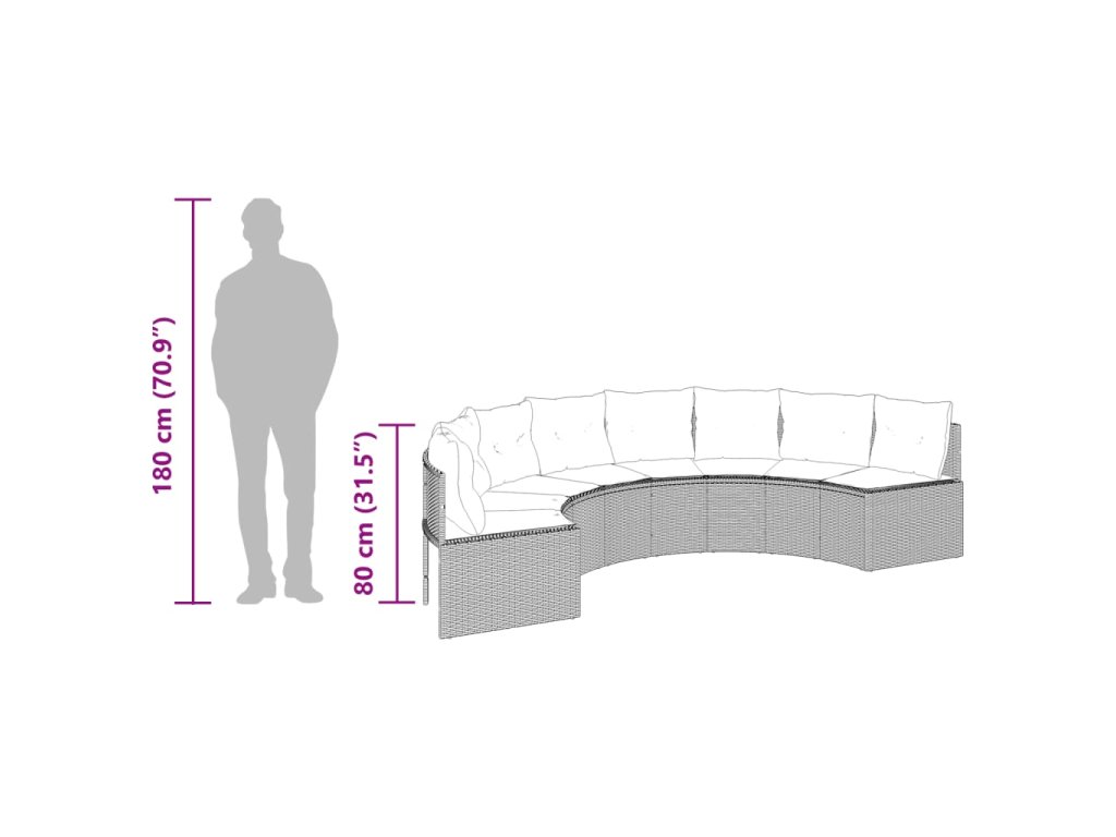 Tato půlkruhová zahradní sedací souprava je dokonalým doplňkem vaší zahrady, terasy nebo dvorku a poskytne vám pohodlné a příjemné místo, kde si můžete povídat s rodinou a přáteli nebo jen tak odpočívat a užívat si pobyt venku.