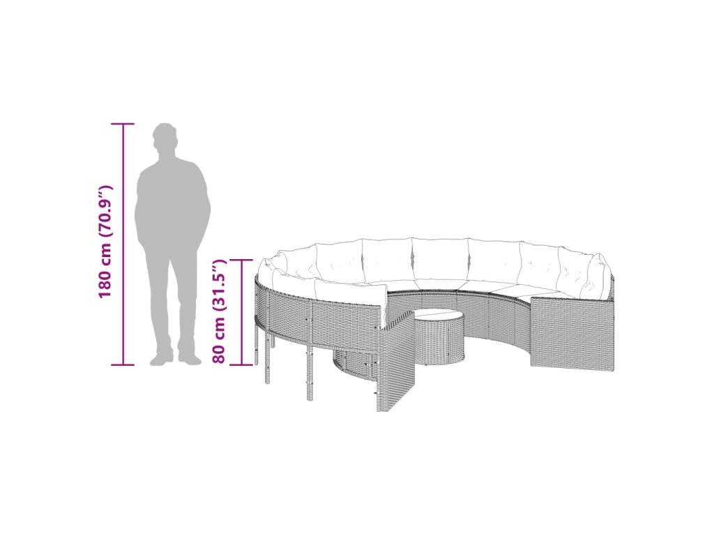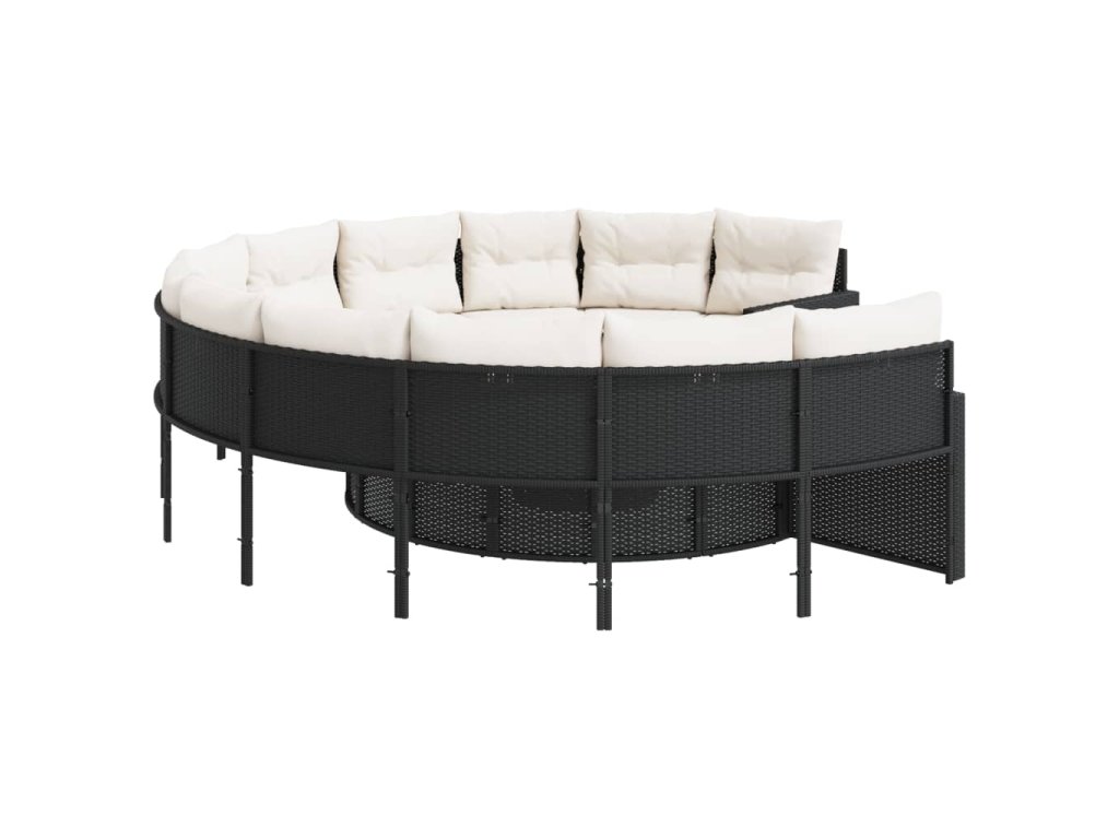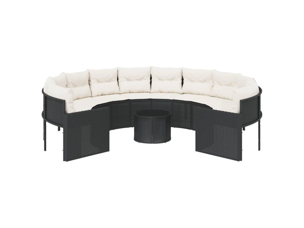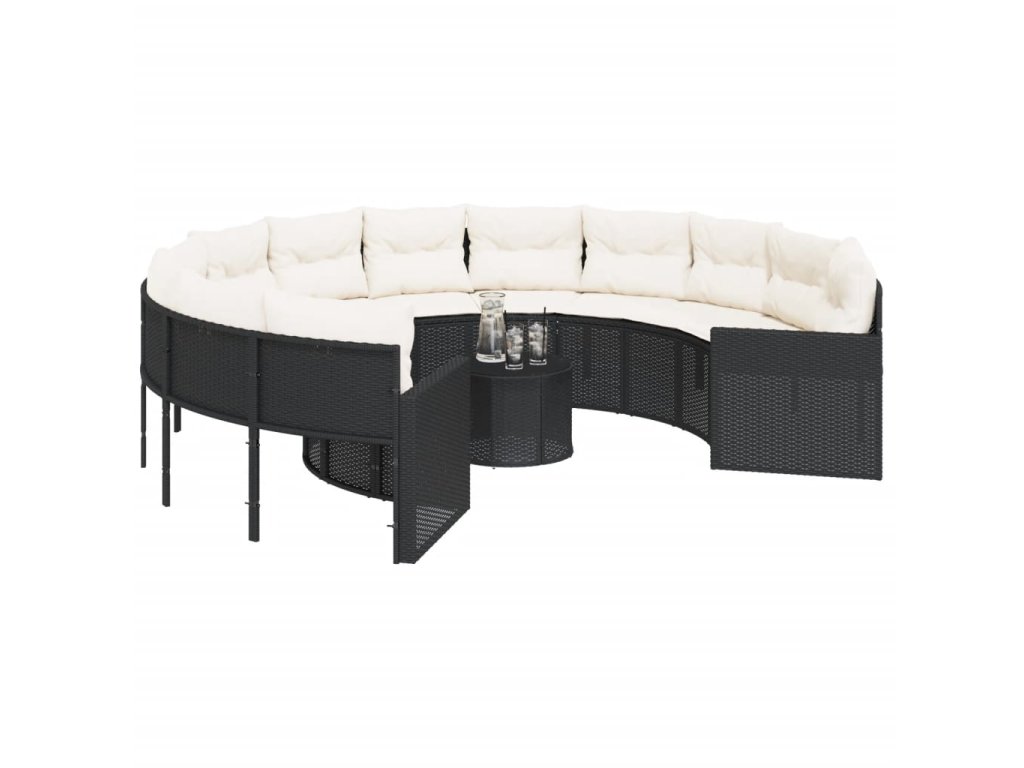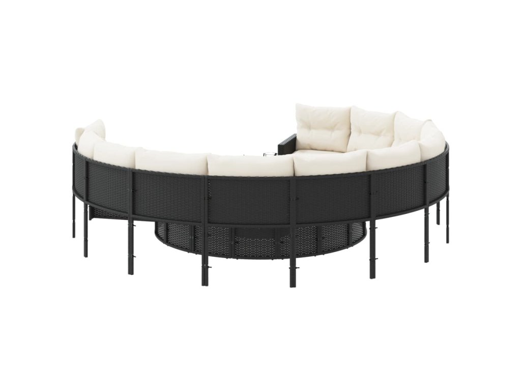 Zahradní pohovka se stolkem a poduškami kulatá černá polyratan 3318535