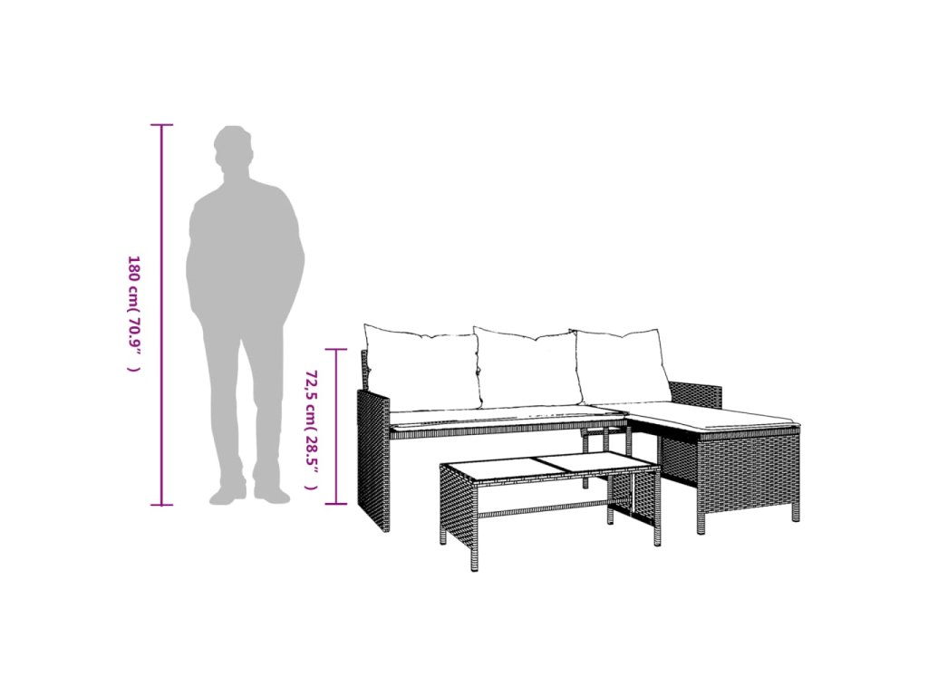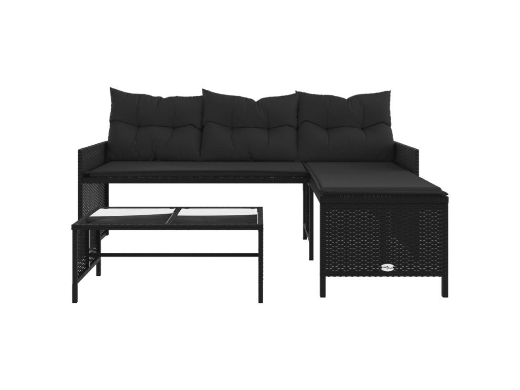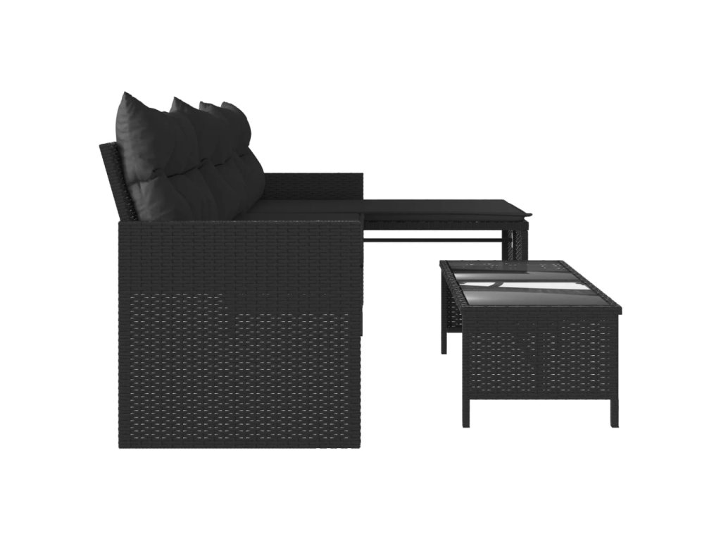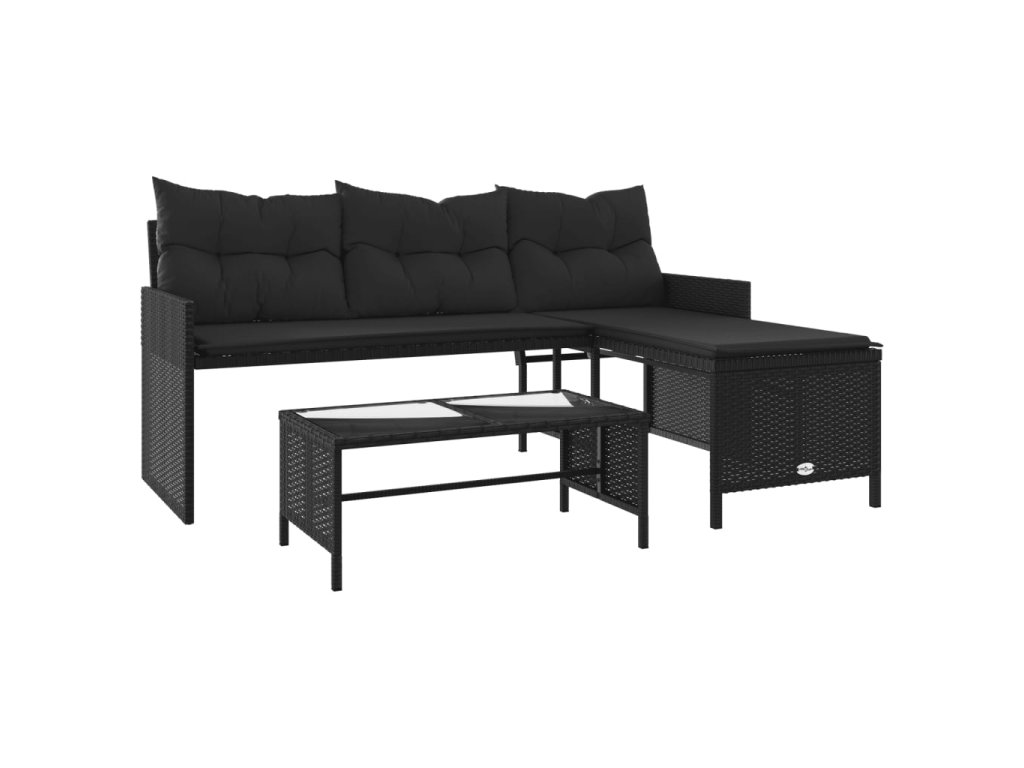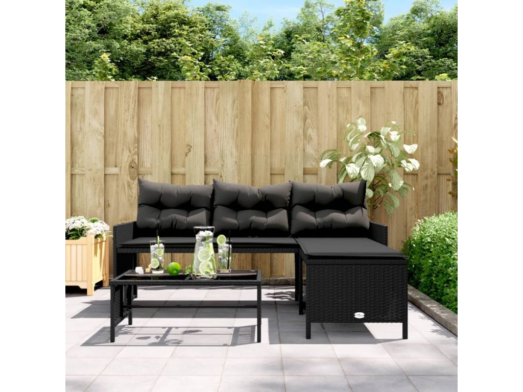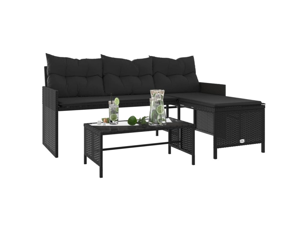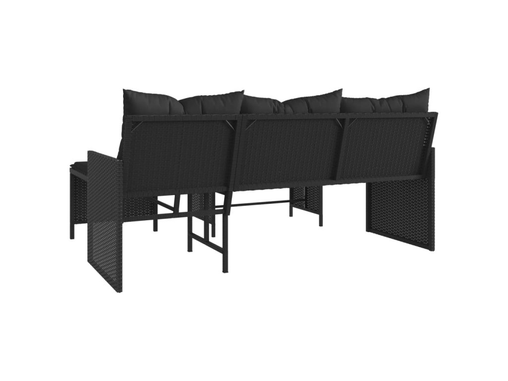 Zahradní pohovka ve tvaru L stolek a podušky černá polyratan 365572