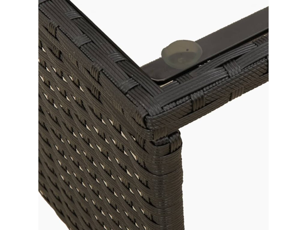 - Materiál: PE ratan, práškově lakovaná ocel, tvrzené sklo