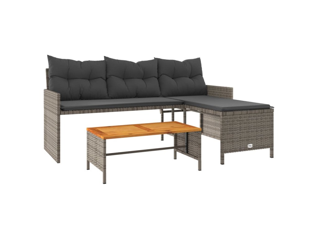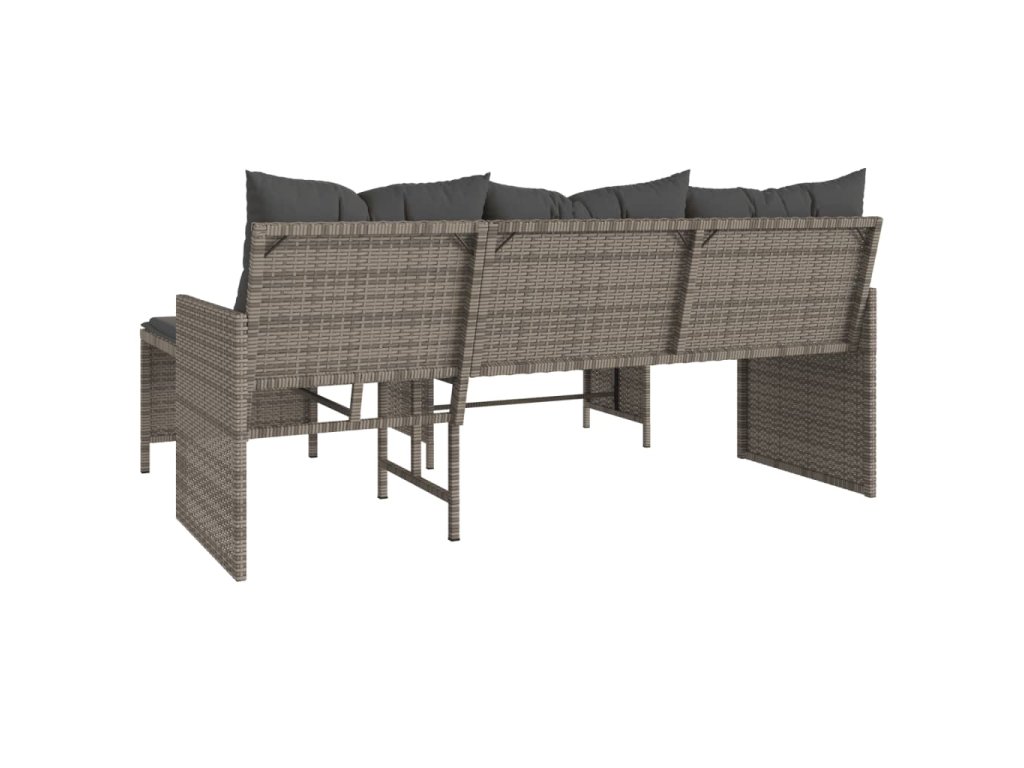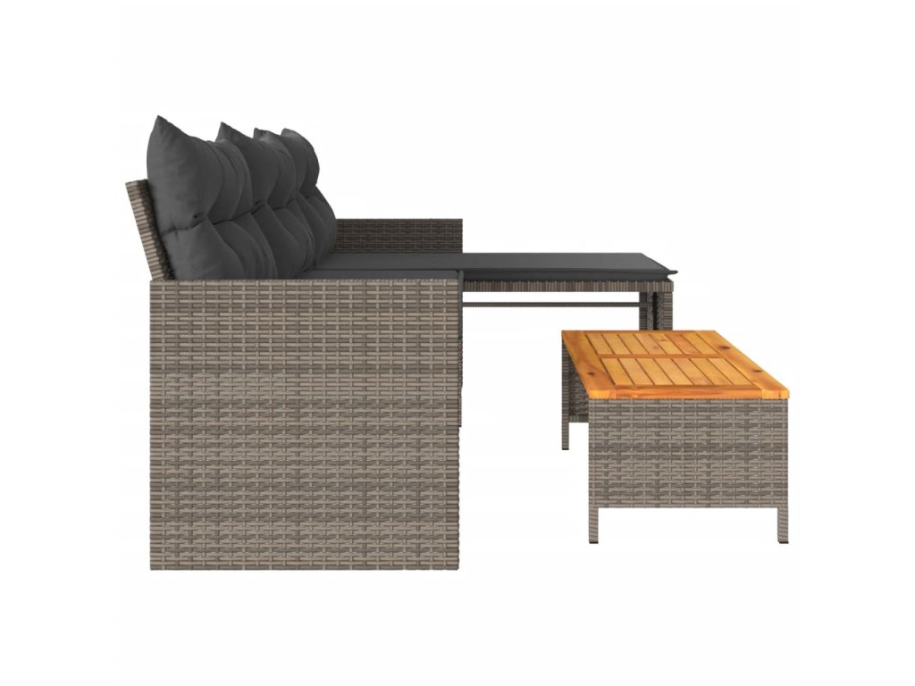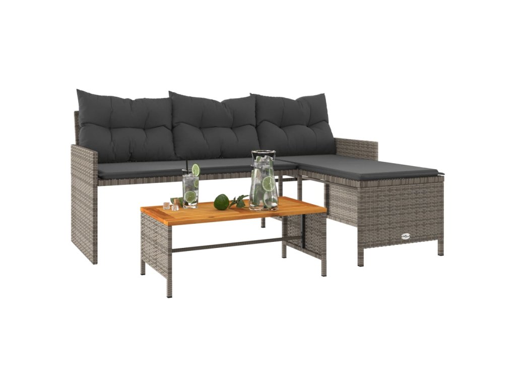 Zahradní pohovka ve tvaru L stolek a podušky šedá polyratan 365582