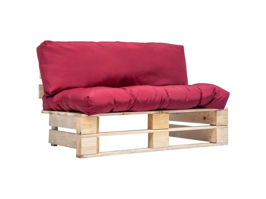 Zahradní pohovka z palet s červenými poduškami borovice 277478