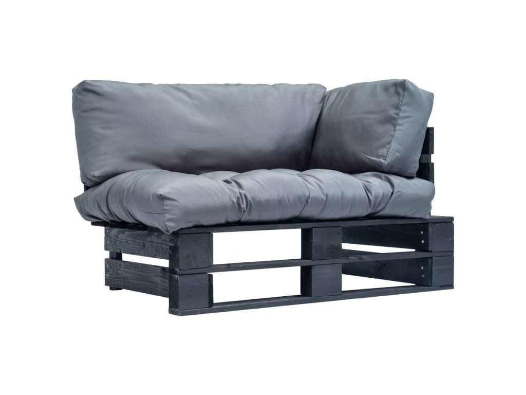 Zahradní pohovka z palet s šedými poduškami borovice 277414