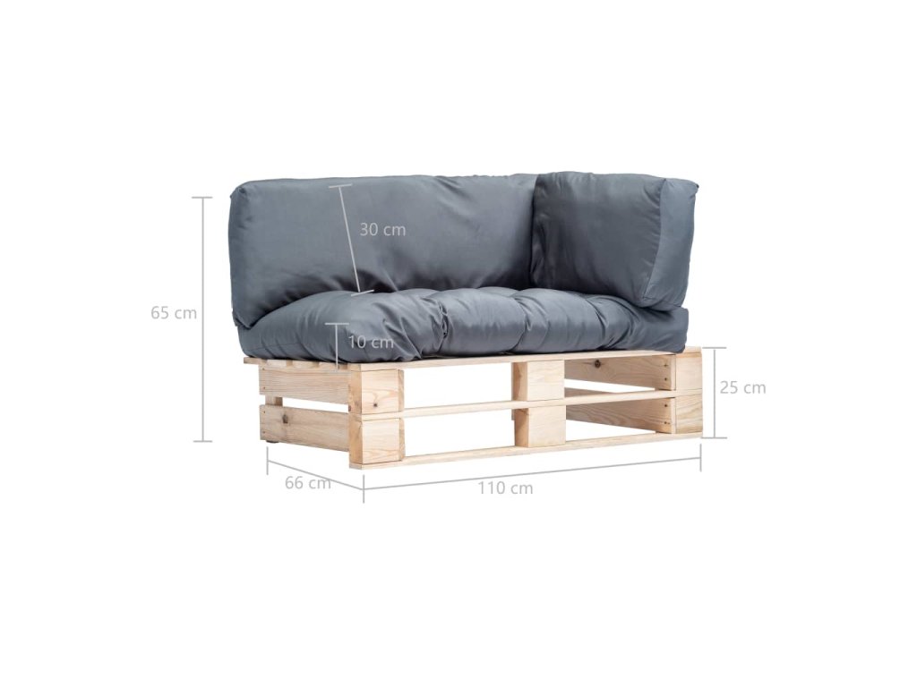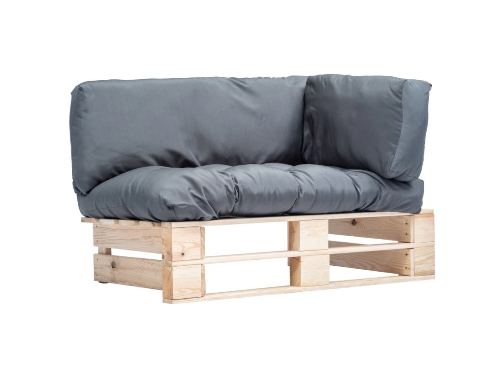 Zahradní pohovka z palet s šedými poduškami borovice 277480