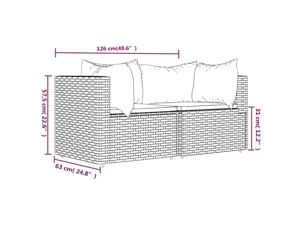 Zahradní rohové pohovky s poduškami 2 ks hnědé polyratan 319826