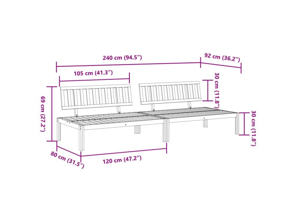Zahradní středové pohovky z palet 2 ks masivní akáciové dřevo 3209433